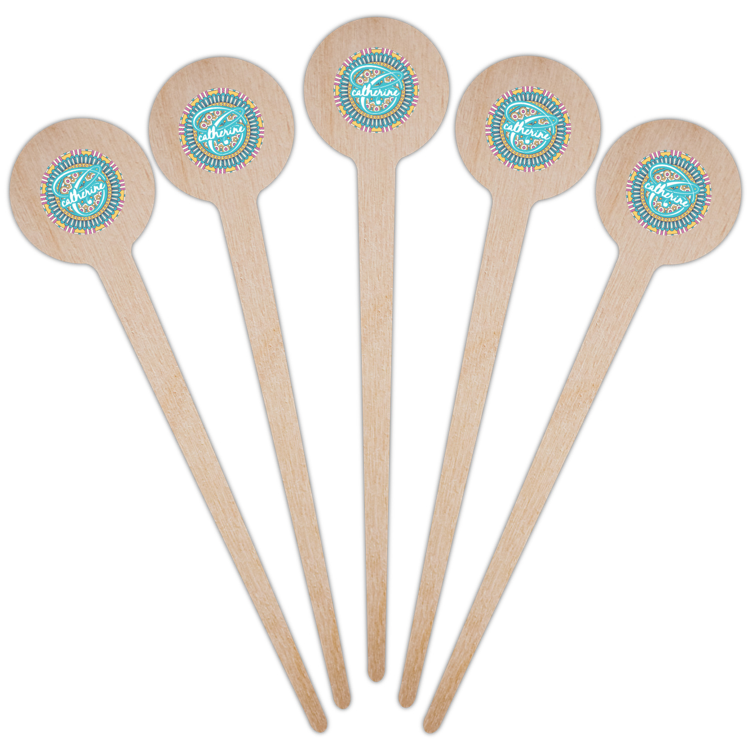 Shape + Symbol Designs for 4" Round Wooden Food Picks - Single-Sided