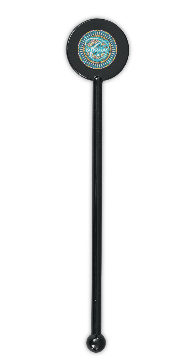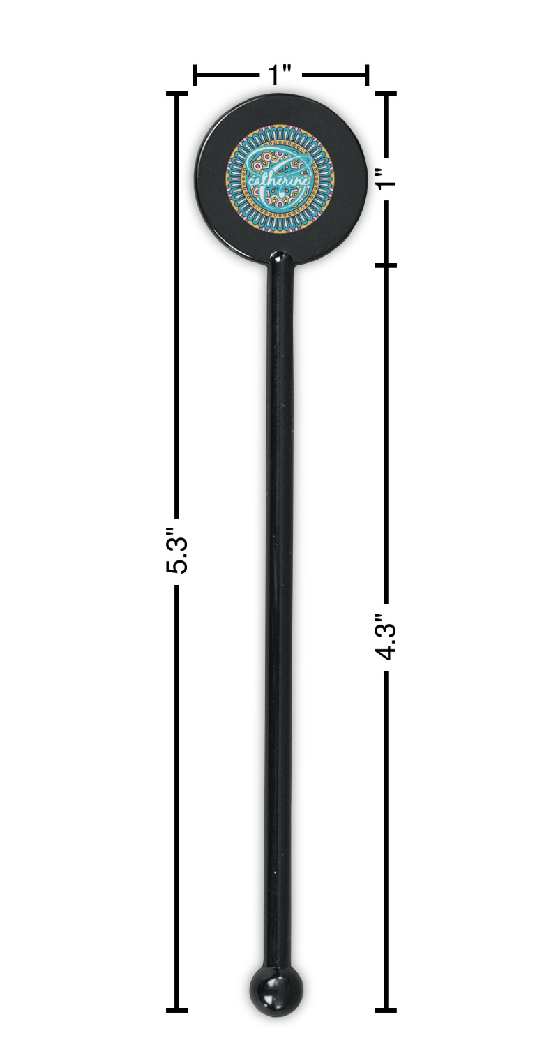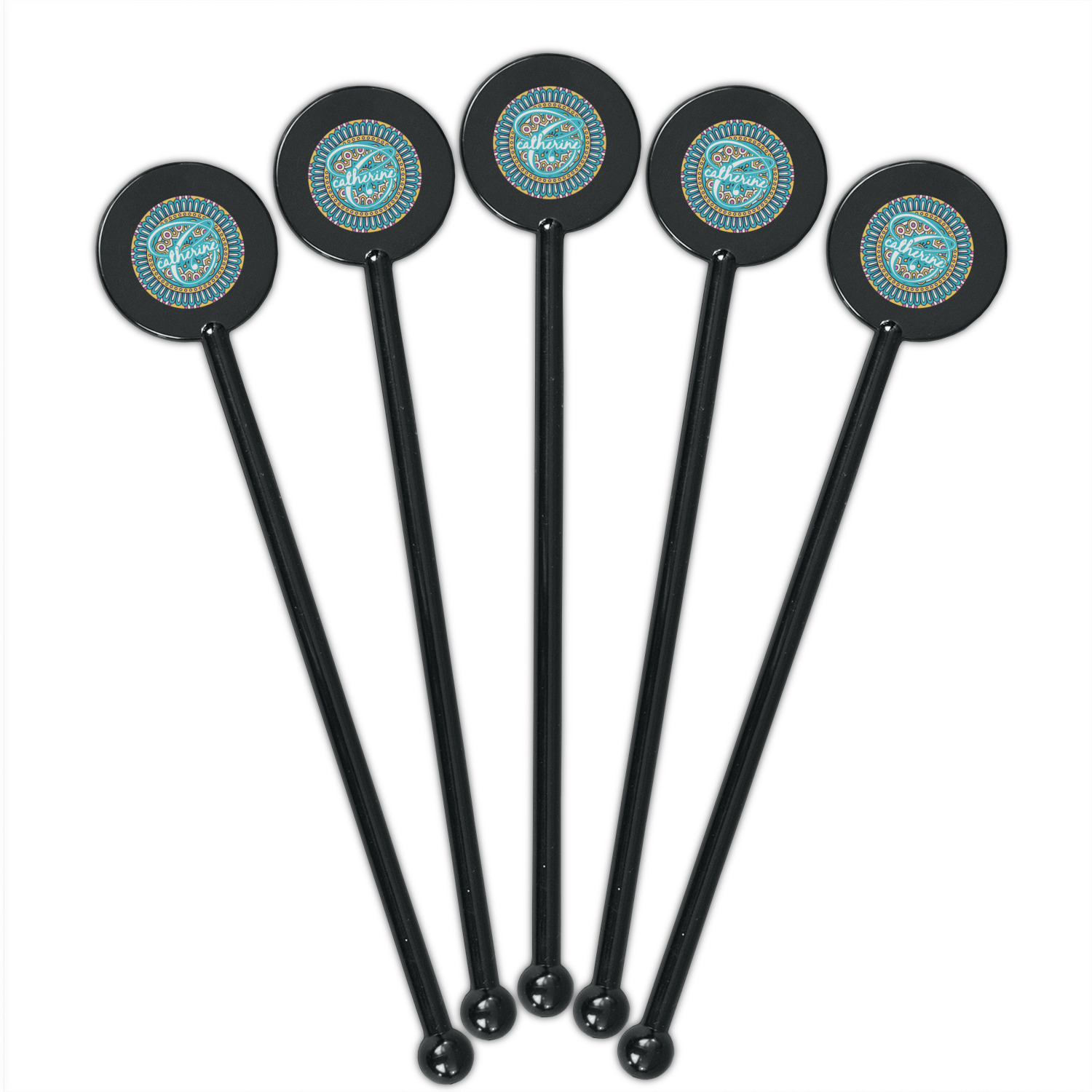 Shape + Symbol Designs for 5.5" Round Plastic Stir Sticks - Black - Single-Sided