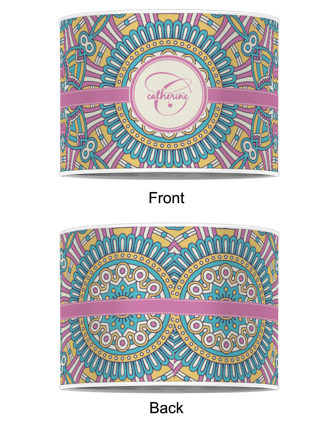 The designs main feature is its beautiful pattern. The pattern is filled with intricate detail and bohemian style shapes. The colors are a drastic difference from what you would normally see in a bohemian design, making this design all the more unique. You are able to put your personalization in the frame in the middle. The colors you will find are a bubble gum pink, teal, light yellow, and white.