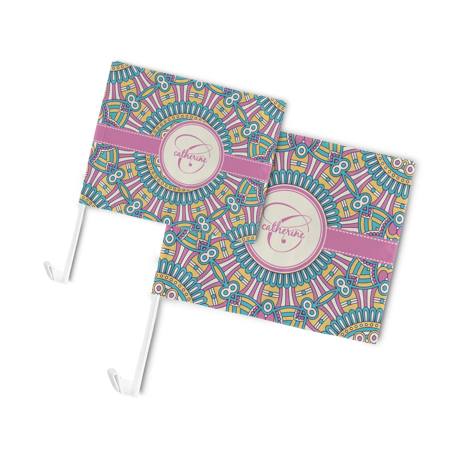 Our personalized flags are made from a durable, yet lightweight cloth that will proudly bear your logo or design of choice, while withstanding the outside elements. We have two size options - 8" x 11" and 11" x 15". Both come with a flag pole which includes a clip that secures the pole to the side window, whether it is rolled up or down. The flags are printed on both sides to display your design from all directions.