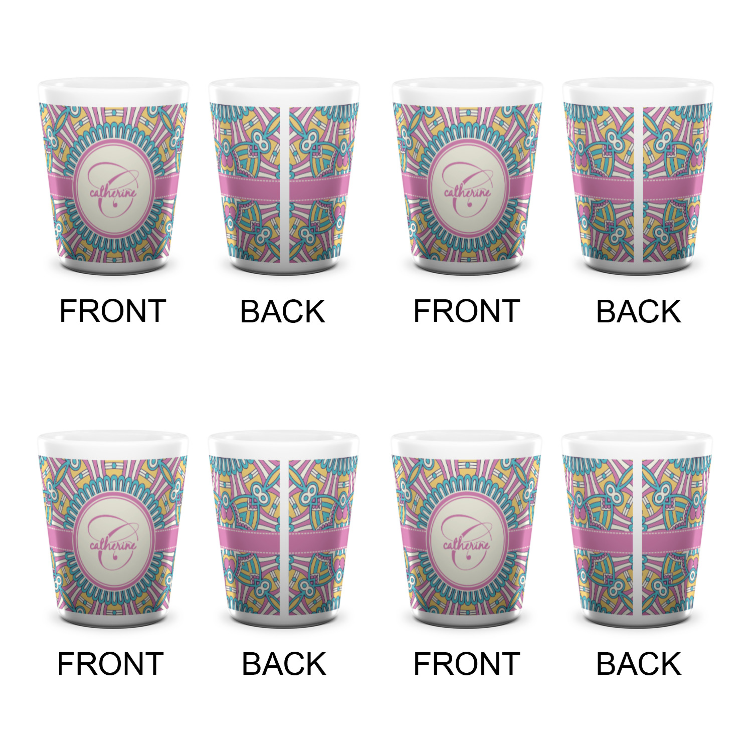 Made from ceramic these shot glasses are printed in full color with the design of your choice. These are a standard 1.5oz size and stand 2.25" tall. Available in a full white ceramic or a two-tone with a black color inside the shot glass. Buy a single or a set of 4, all of which can be designed separately to get you just what you want and need.