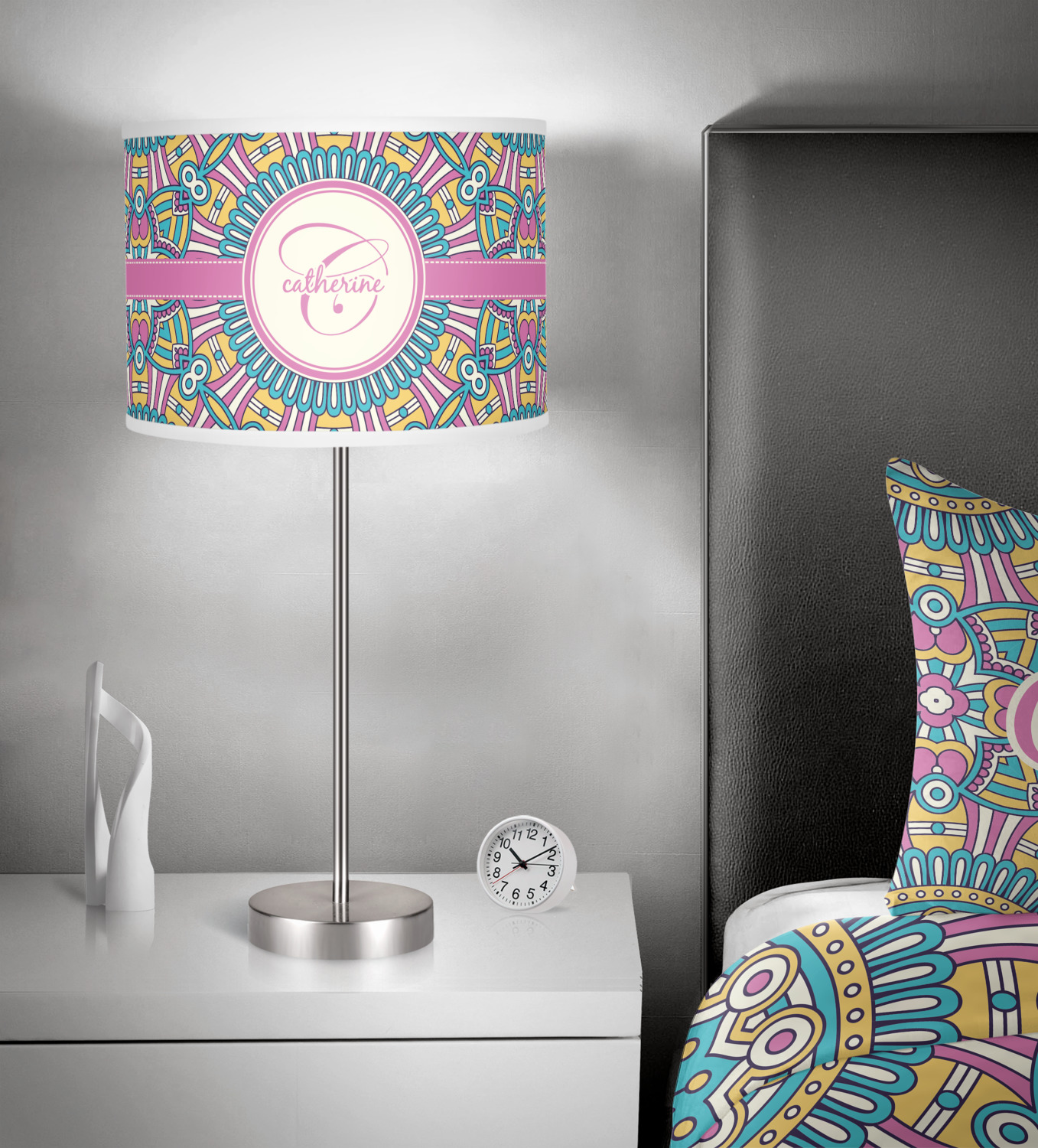 The designs main feature is its beautiful pattern. The pattern is filled with intricate detail and bohemian style shapes. The colors are a drastic difference from what you would normally see in a bohemian design, making this design all the more unique. You are able to put your personalization in the frame in the middle. The colors you will find are a bubble gum pink, teal, light yellow, and white.