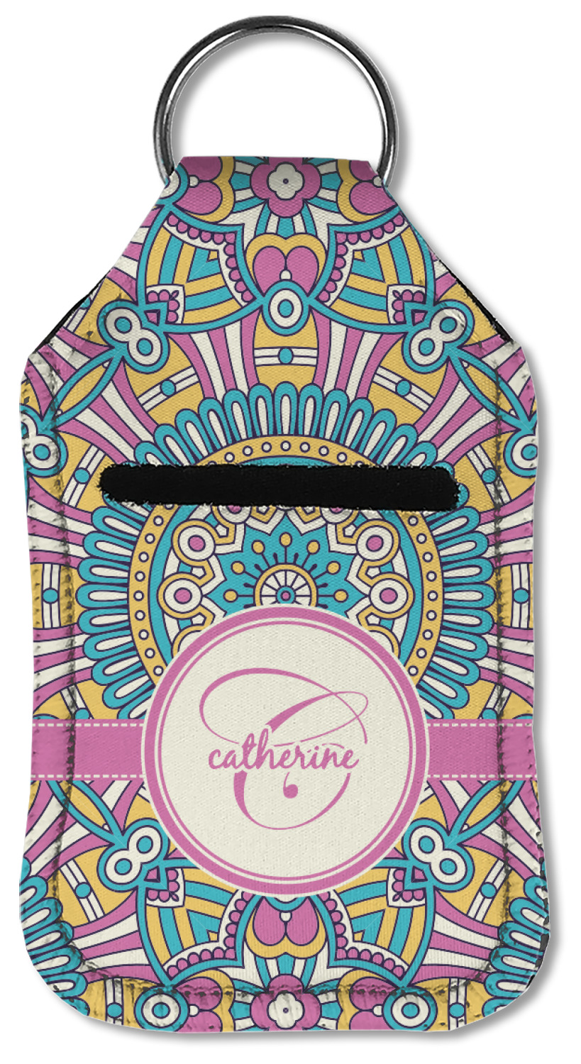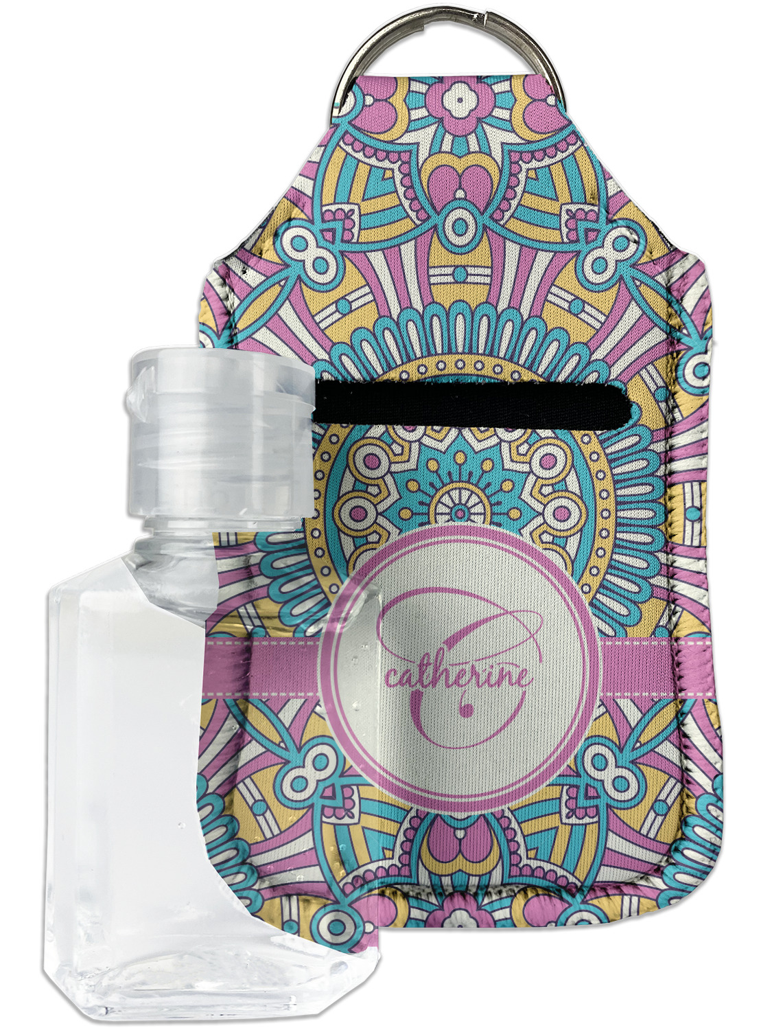 Each hand sanitizer holder comes with its own empty travel-sized, refillable hand sanitizer sure to fit snug in your customized sanitizer case! Our hand sanitizer cases are a durable, yet soft neoprene material sure to last any daily activities or travel agenda. Customize and personalize a hand sanitizer bottle holder with one of our two sizes - small (4.25" x 2.25") or large (5.5" x 2.5"). Each travel sanitizer holder comes with a keyring for attachment on bags, keys, or more!