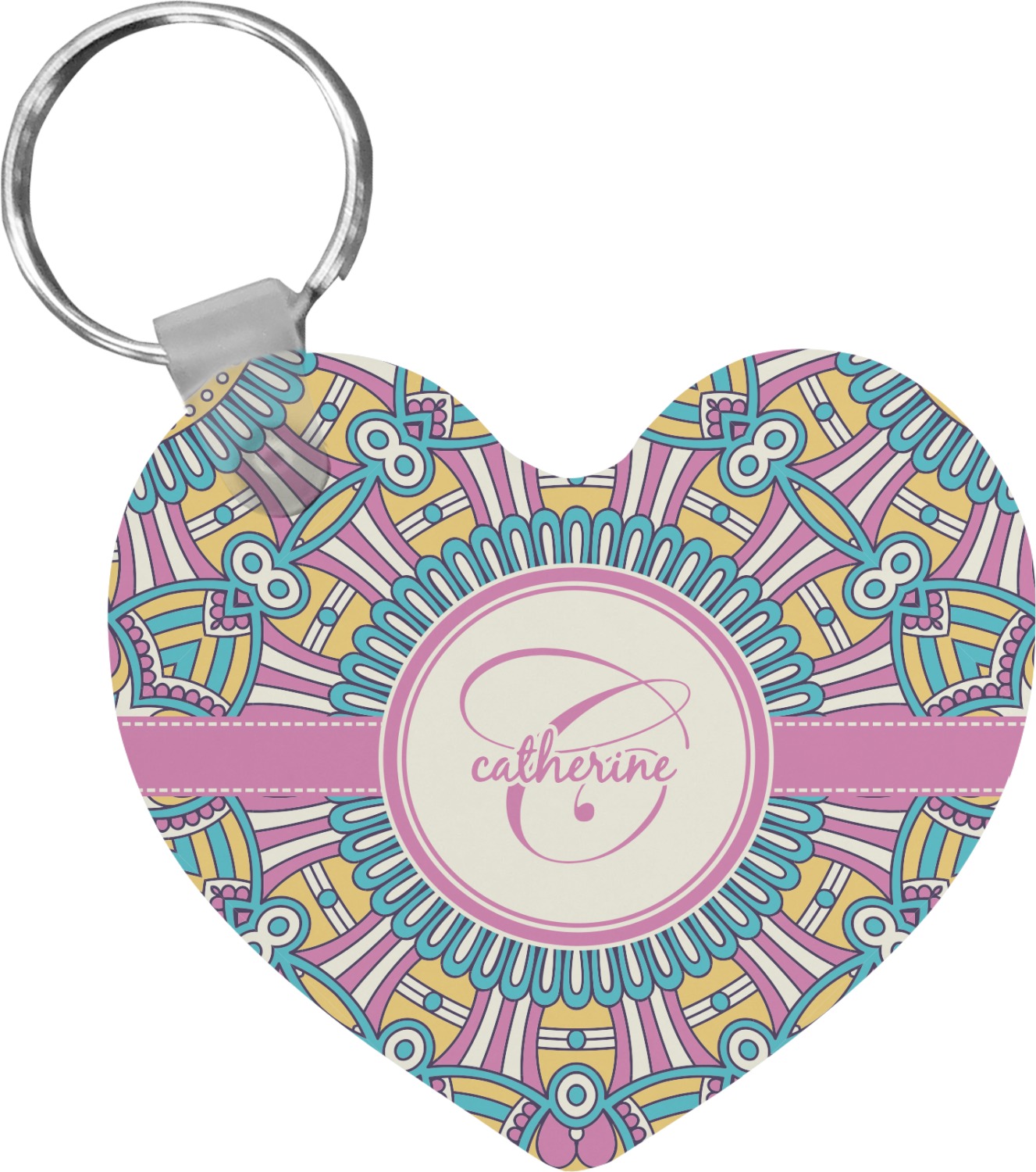 Our personalized keychains attach to the included metal, split key ring with a plastic, removable snap. Since a metal ring is included with your purchase, you have the liberty to keep your keys together on the ring, with or without your unique keychain. We offer this keychain in three different shapes: circle, heart, or diamond. We print your personalized design(s) on both sides of the key chain, and the surface has a glossy, reflective finish that only emphasizes your design. Each keychain is approximately 2.25 by 2.25 inches.