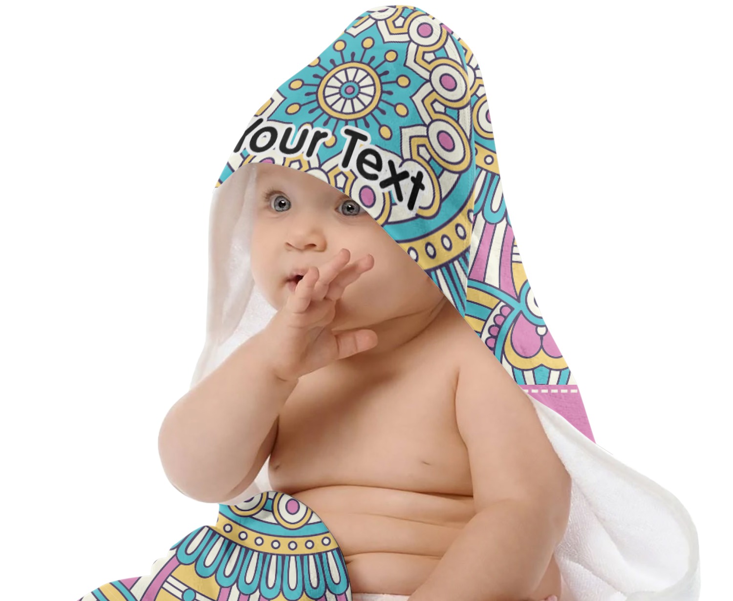This baby towel is made with a plush microfiber velour and cotton terry. and thus will be soft and gentle against your newborn's skin, but also, very absorbent. Your customization is printed across the front & the hood, while the inside is a classy white.
