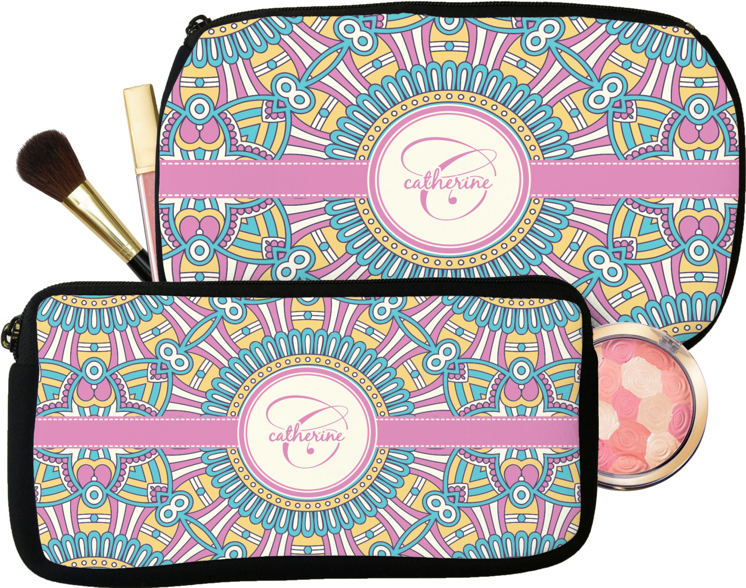 Every girl and woman carries makeup and cosmetics in her purse. Why not carry your makeup in these beautiful custom made and personalized makeup bags. These cosmetic bags also make a great bridesmaid gift.