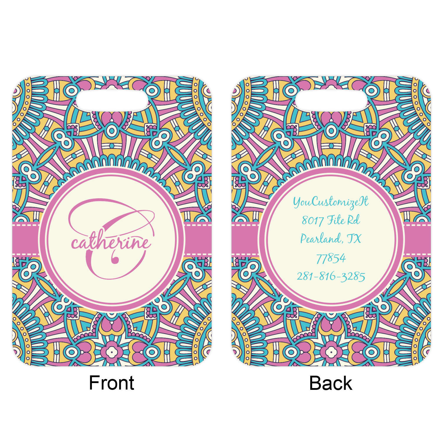 These metal luggage tags are printed on both sides; the front is printed with the design of your choice - and can be personalized with your name, name & initial or your monogram. The back can have as much or as little of your contact information as you desire - your name, your address, city, zip & state, you can also include your phone number and email address. Customize it exactly the way you want it!