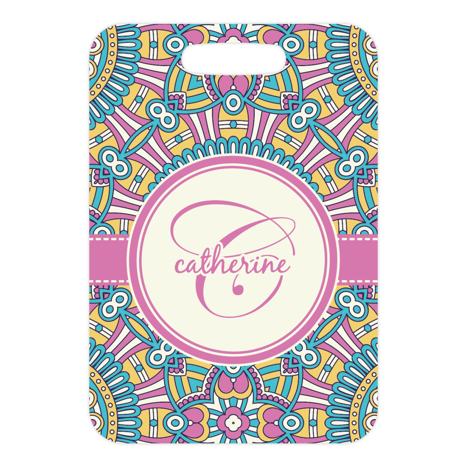 The designs main feature is its beautiful pattern. The pattern is filled with intricate detail and bohemian style shapes. The colors are a drastic difference from what you would normally see in a bohemian design, making this design all the more unique. You are able to put your personalization in the frame in the middle. The colors you will find are a bubble gum pink, teal, light yellow, and white.