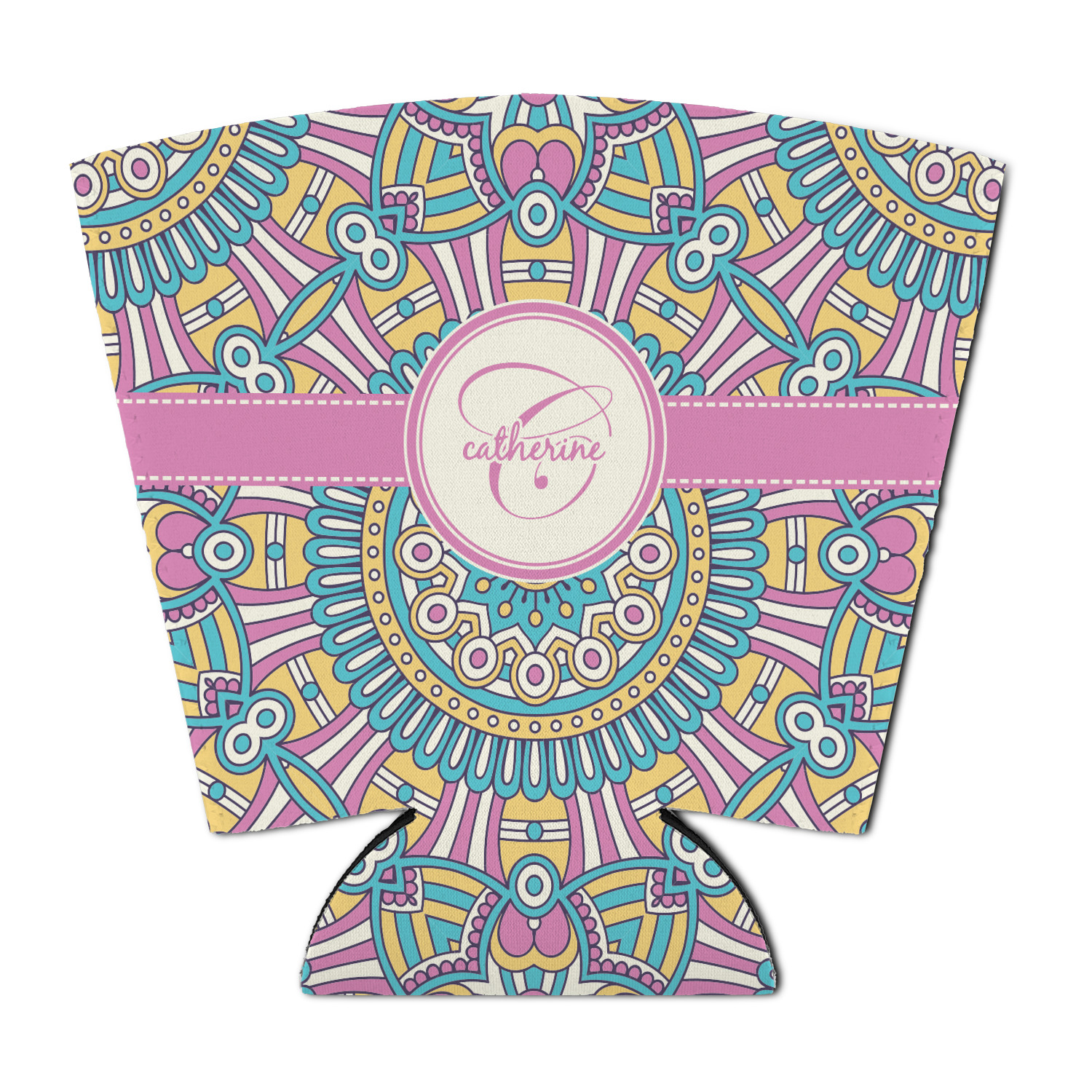 The designs main feature is its beautiful pattern. The pattern is filled with intricate detail and bohemian style shapes. The colors are a drastic difference from what you would normally see in a bohemian design, making this design all the more unique. You are able to put your personalization in the frame in the middle. The colors you will find are a bubble gum pink, teal, light yellow, and white.
