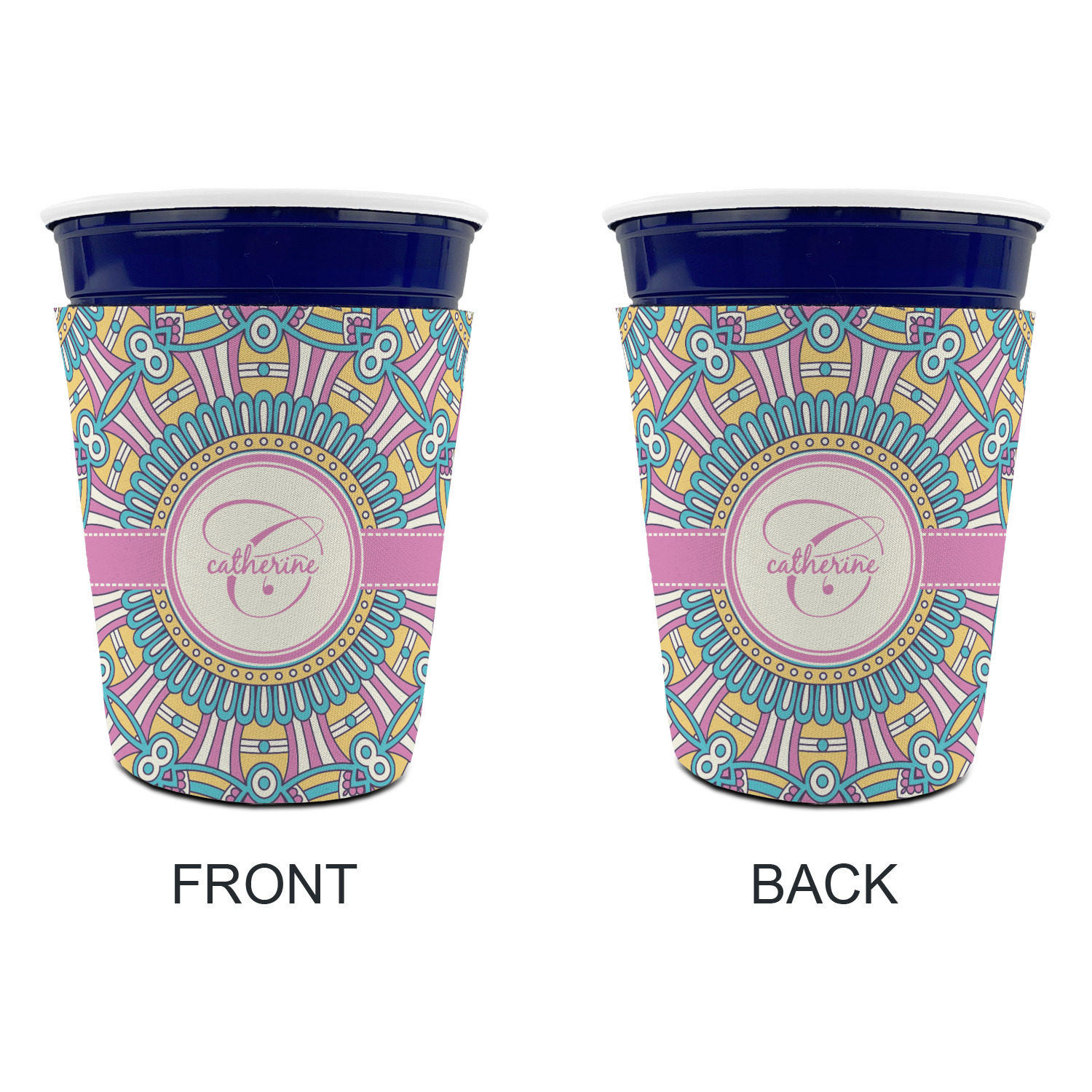 Made from neoprene with a polyester outer fabric and sewn seams, these premium quality party cup sleeves are very durable and will hold up to heavy use. They are available in 2 styles - with a bottom or just a sleeve to go around the outside of the tapered cup. The sleeve covers are about 4" tall and cover about 90% of the classic 16 oz. Solo cup.