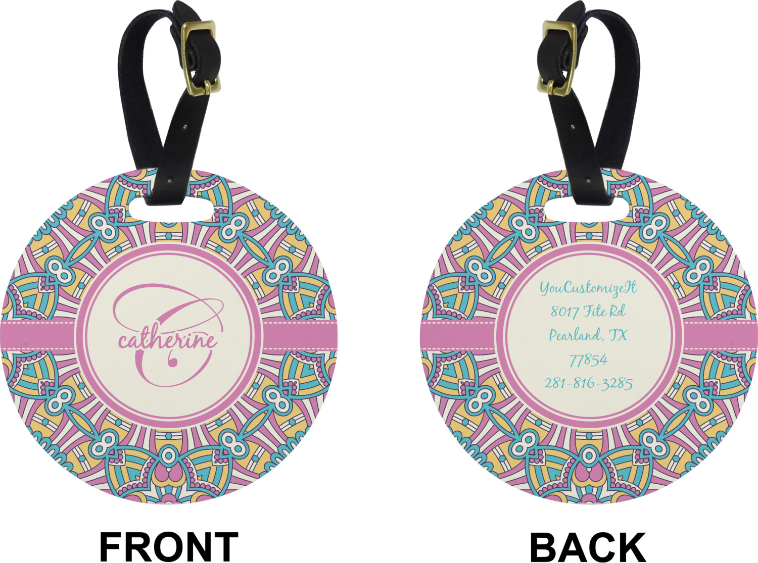 These cute luggage tags are made of a fiber-reinforced, UV-resistant plastic, making them waterproof and durable enough for both everyday use and the rugged adventures of any traveler! A leather strap with holes and a buckle is included with your purchase and can be used to attach your custom luggage tag to any suitcase, backpack, or duffel bag. You can design these travel tags as you wish; your customization will be displayed across the front, while the back will show as little or as much personal information as you want.