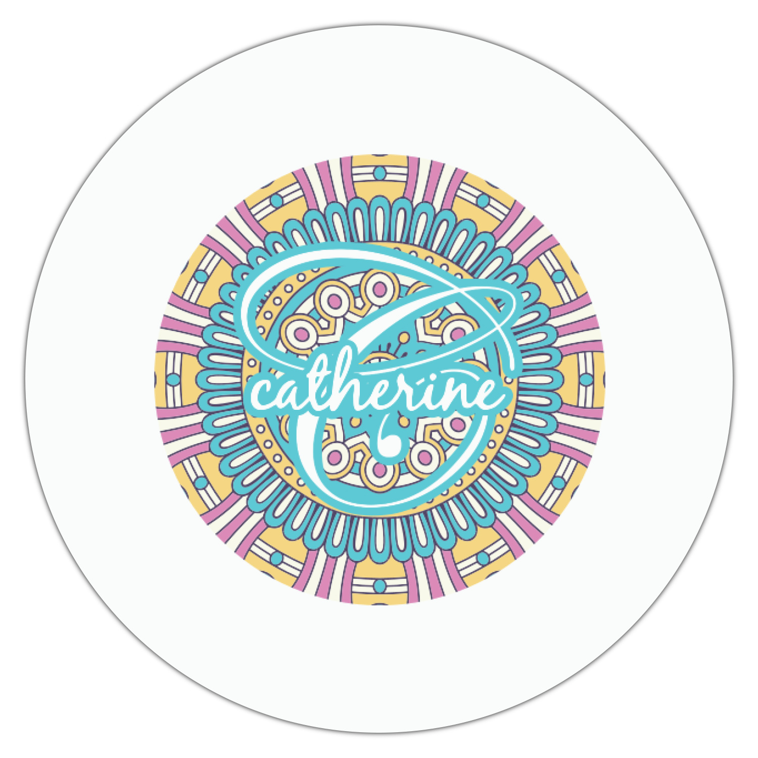 The designs main feature is its beautiful pattern. The pattern is filled with intricate detail and bohemian style shapes. The colors are a drastic difference from what you would normally see in a bohemian design, making this design all the more unique. You are able to put your personalization in the frame in the middle. The colors you will find are a bubble gum pink, teal, light yellow, and white.