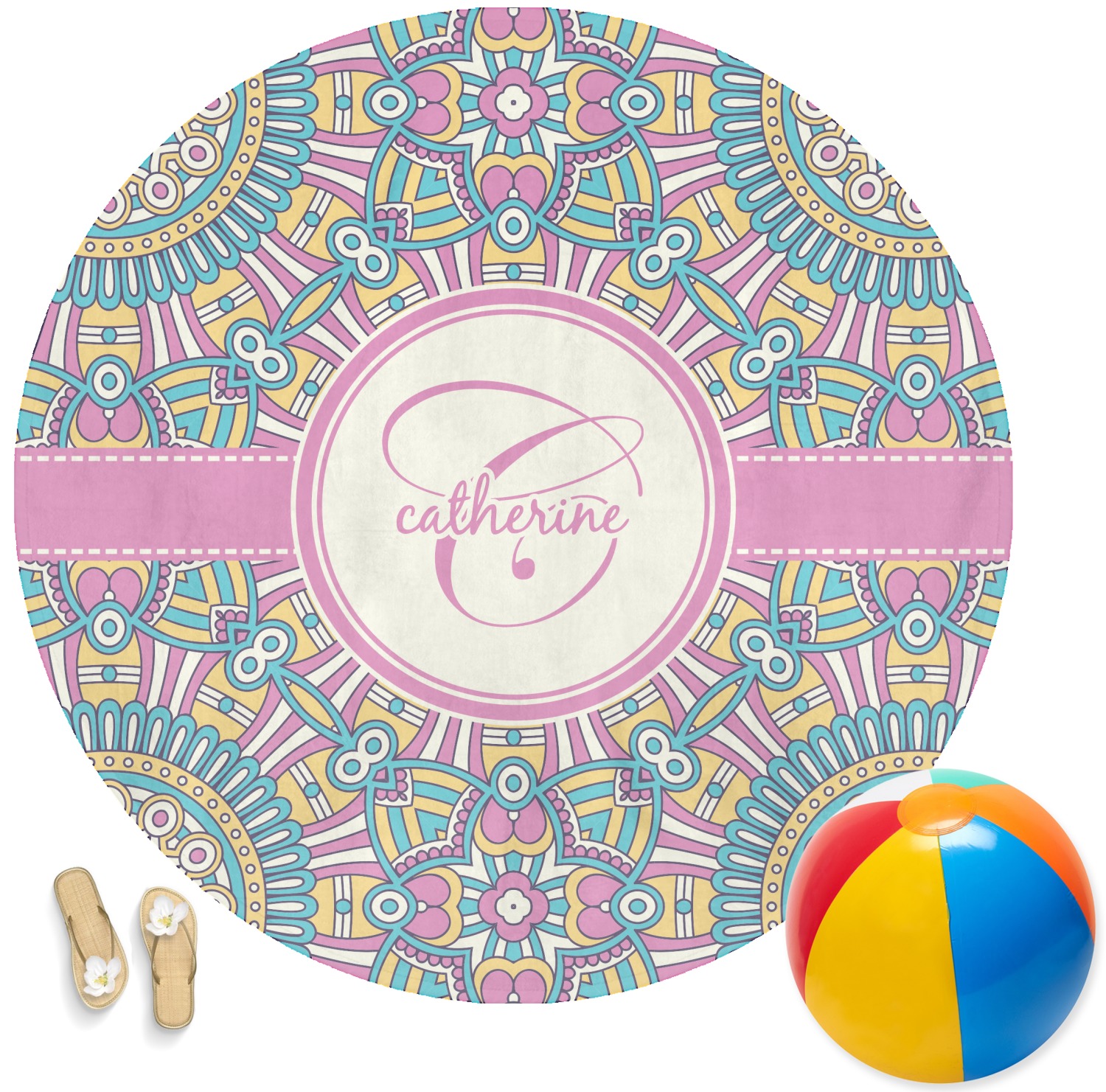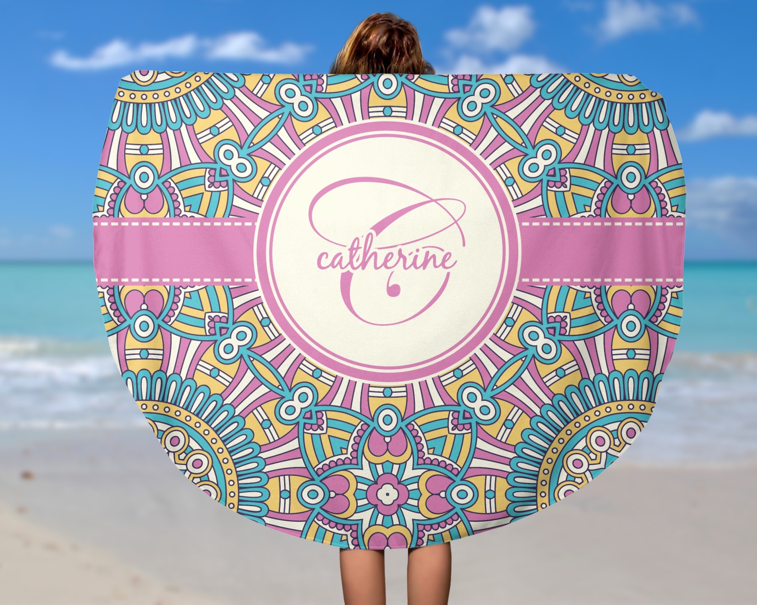Think out of the box on your next beach, pool, or picnic day in style on your personalized round towel. This must have durable accessory is the perfect size for keeping you, and your possessions out of the sand. Sprawl out in the sun without getting your hands dirty, the unique round design allows for a full range of motion.