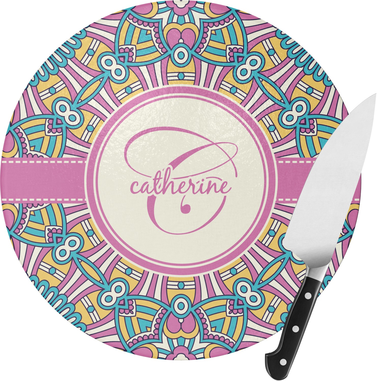 Prep your meals with passion when you use our personalized round cutting boards. The personalization options we offer really make them one of a kind and they are available in delightful colors and designs that might just keep you smiling instead off crying when you're cutting onions!!