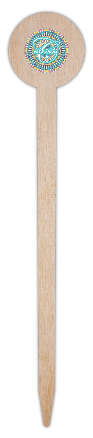 The designs main feature is its beautiful pattern. The pattern is filled with intricate detail and bohemian style shapes. The colors are a drastic difference from what you would normally see in a bohemian design, making this design all the more unique. You are able to put your personalization in the frame in the middle. The colors you will find are a bubble gum pink, teal, light yellow, and white.