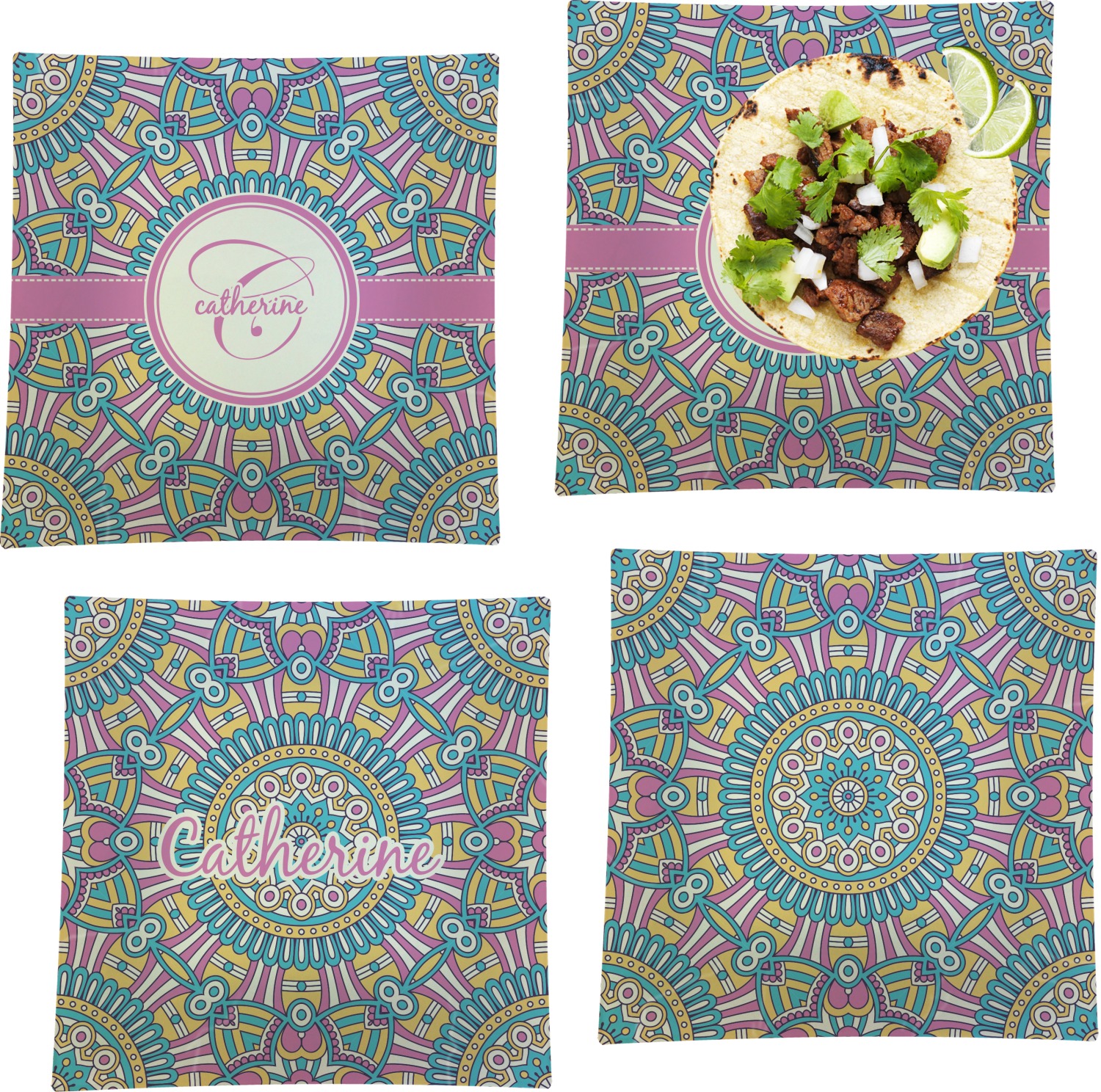 Shape + Symbol Designs for Glass Square Lunch / Dinner Plates 9.5" - Set of 4