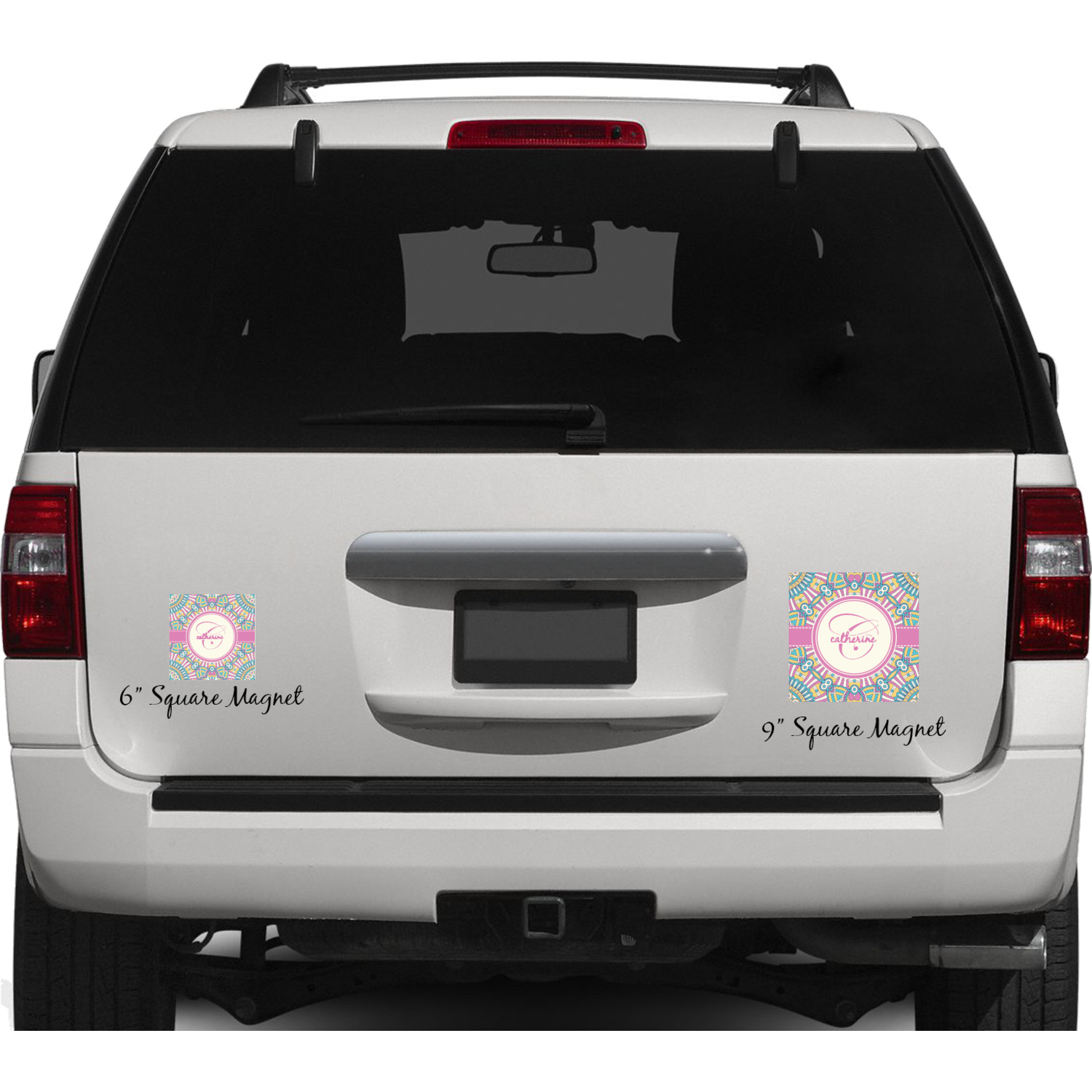 Your personalized car magnets are available for purchase in two shapes and two sizes. We carry round and square editions; each shape can either be 6 by 6 inches, or 10 by 10 inches, depending on your needs. Both versions are 1 millimeter thick, which is considered, within the industry, as the ideal thickness for automobile magnets. The magnetic car decals will adhere to any smooth, metal surface of your cars body, such as the trunk door or a side panel. However, please note that some vehicles are constructed from fiberglass bodies, which prevents the adhesion of anything magnetic. We advise that you test your vehicle before purchasing these magnets.