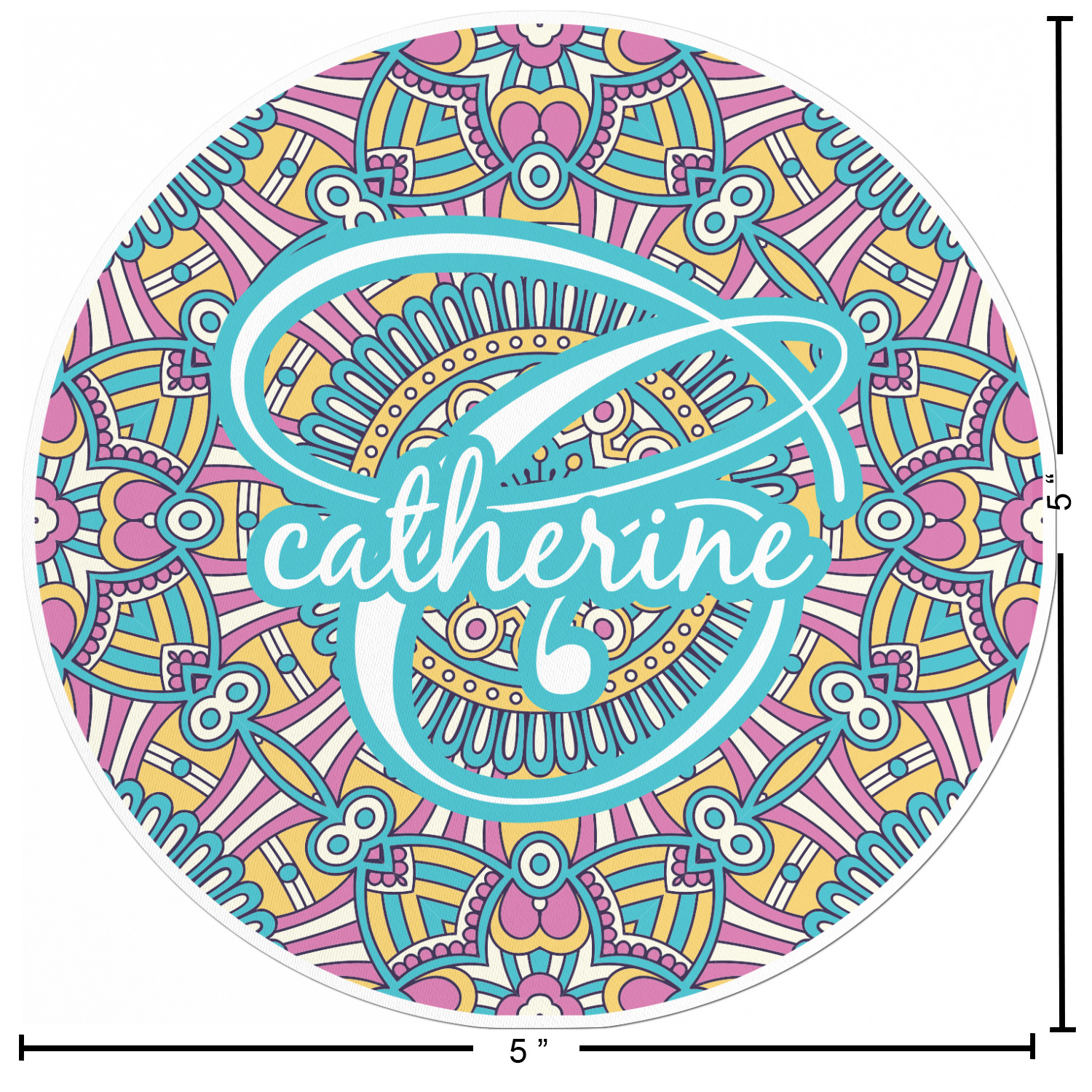 The designs main feature is its beautiful pattern. The pattern is filled with intricate detail and bohemian style shapes. The colors are a drastic difference from what you would normally see in a bohemian design, making this design all the more unique. You are able to put your personalization in the frame in the middle. The colors you will find are a bubble gum pink, teal, light yellow, and white.