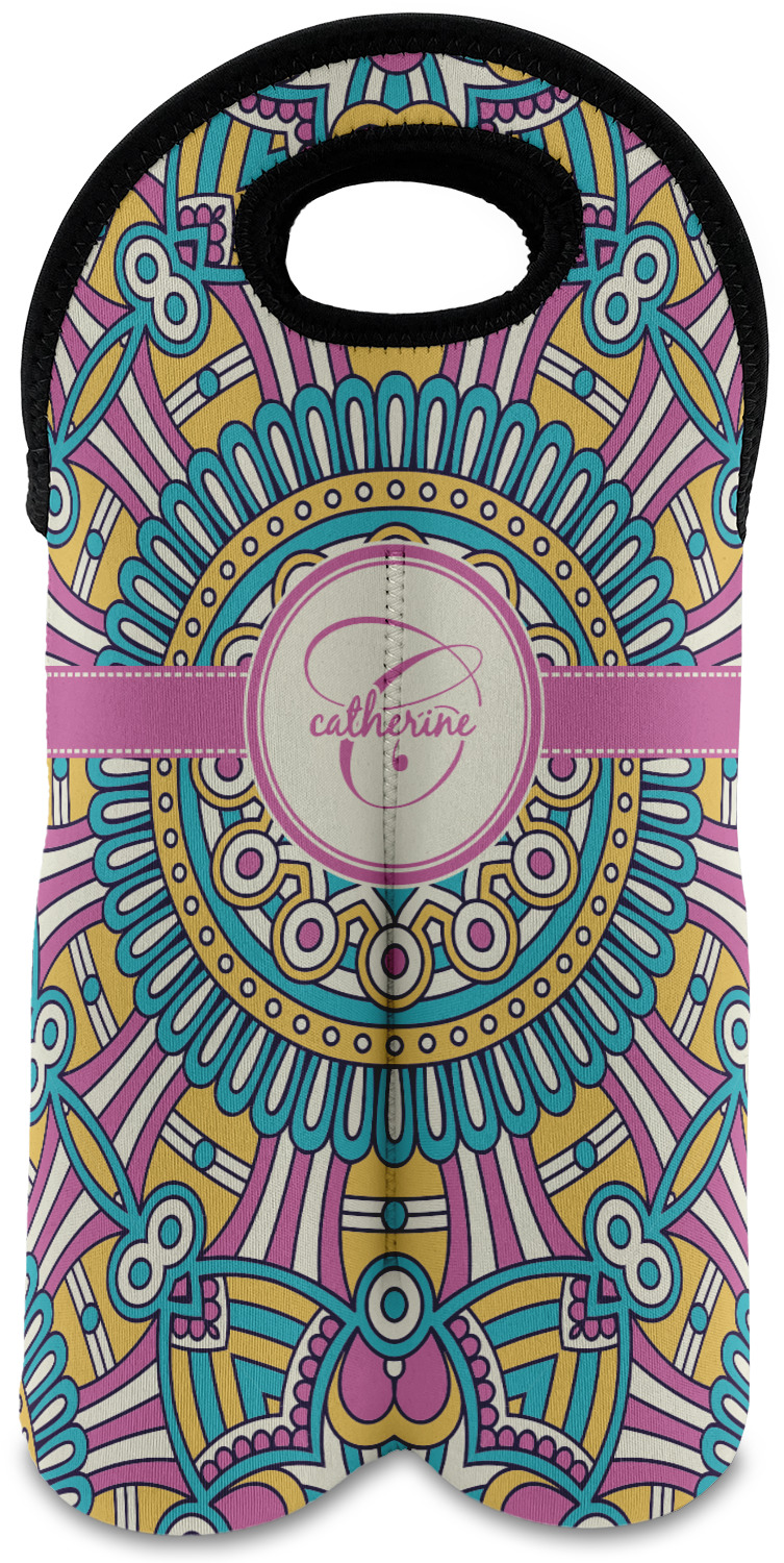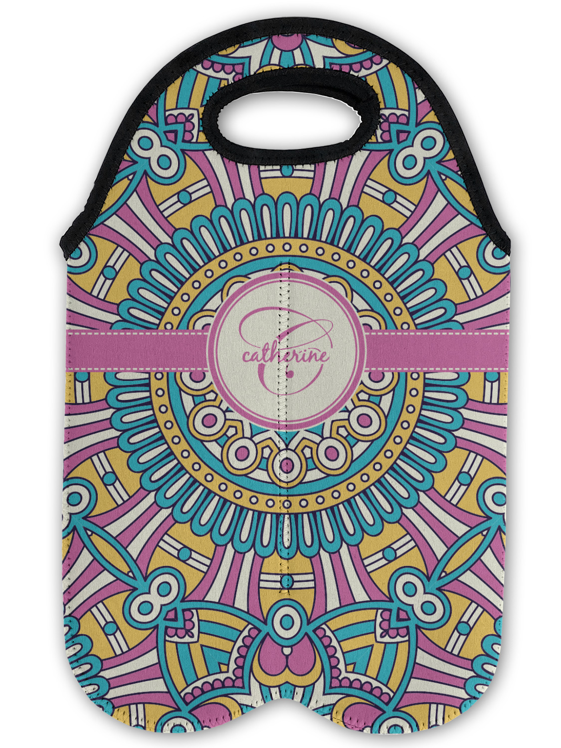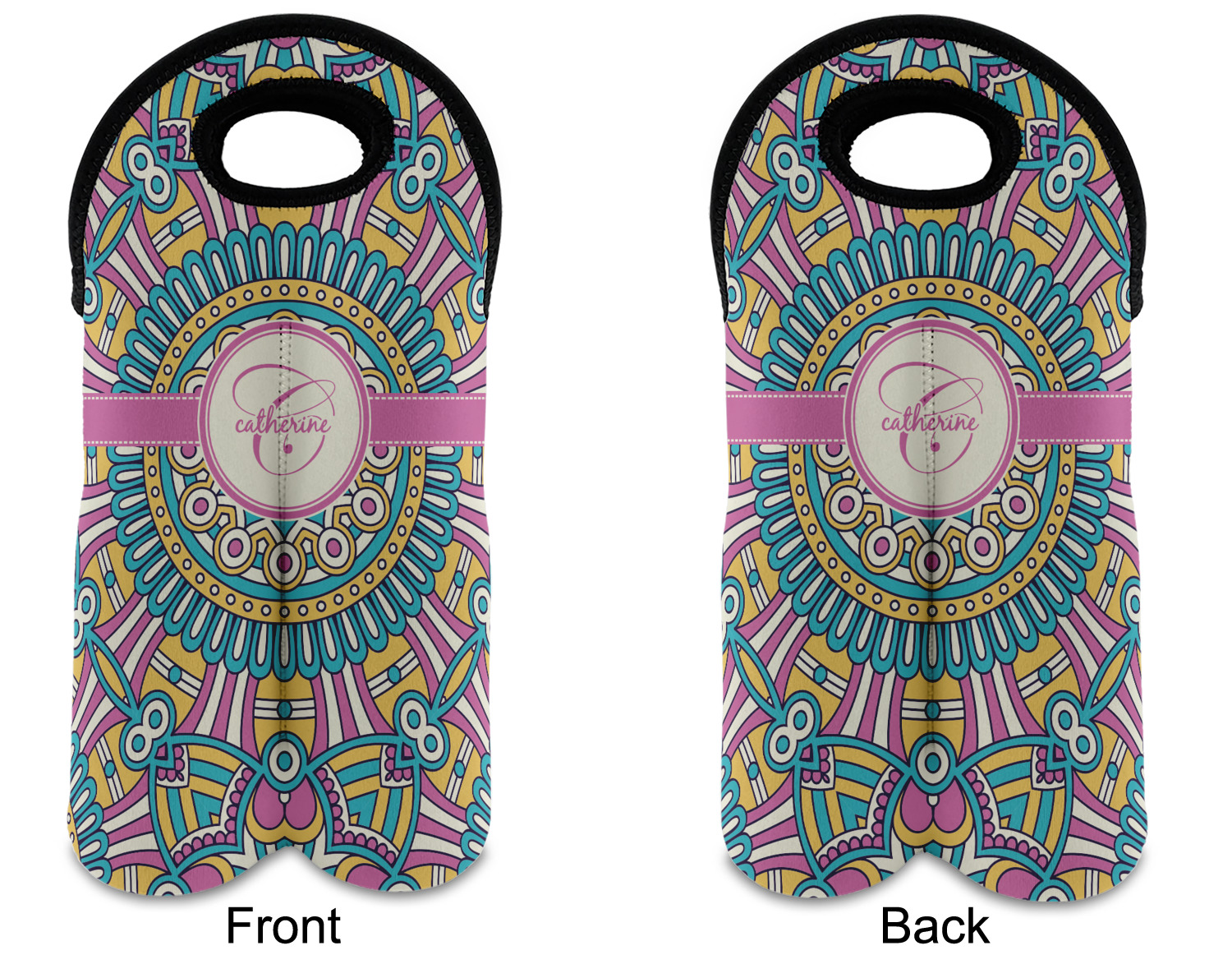These tote bags are insulated to keep the bottles cold and have a stitched separation down the middle and double handles to keep the two bottles safe and secure during travels.