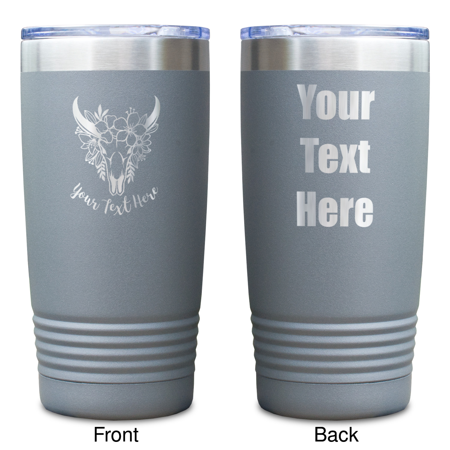 With our personalized 20 oz double wall stainless steel tumblers, you'll never have to settle for a plain, boring tumbler again! These tumblers will be a wonderful addition to your drinkware collection and will make those long commutes much brighter. Personalize one for yourself, or give these personalized tumblers as a gift to relatives, friends, or coworkers!