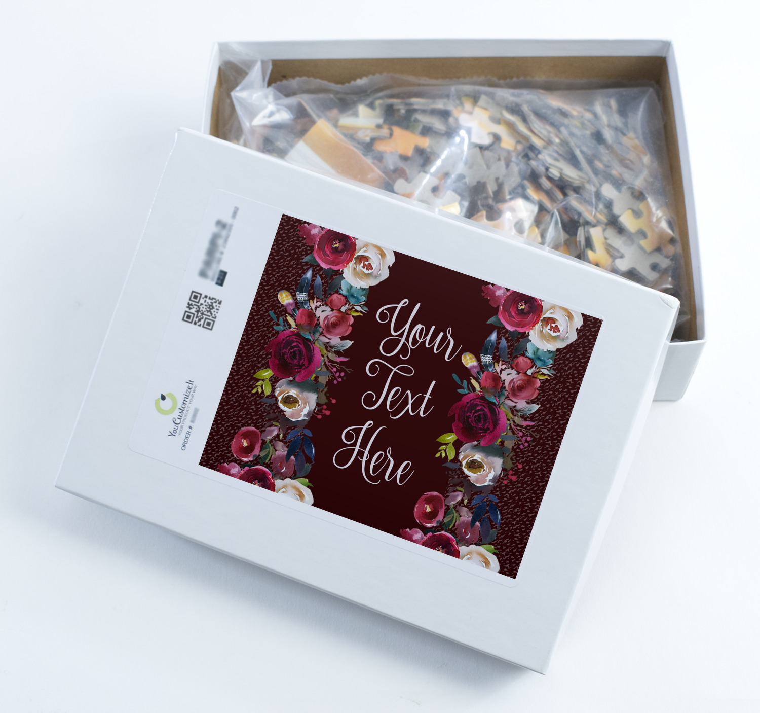 Depending on the look you are trying to achieve, you can add; a thematic pattern or background, with a photo in a frame and text or personalization to your puzzle. Basically if you can imagine it, you can design it!