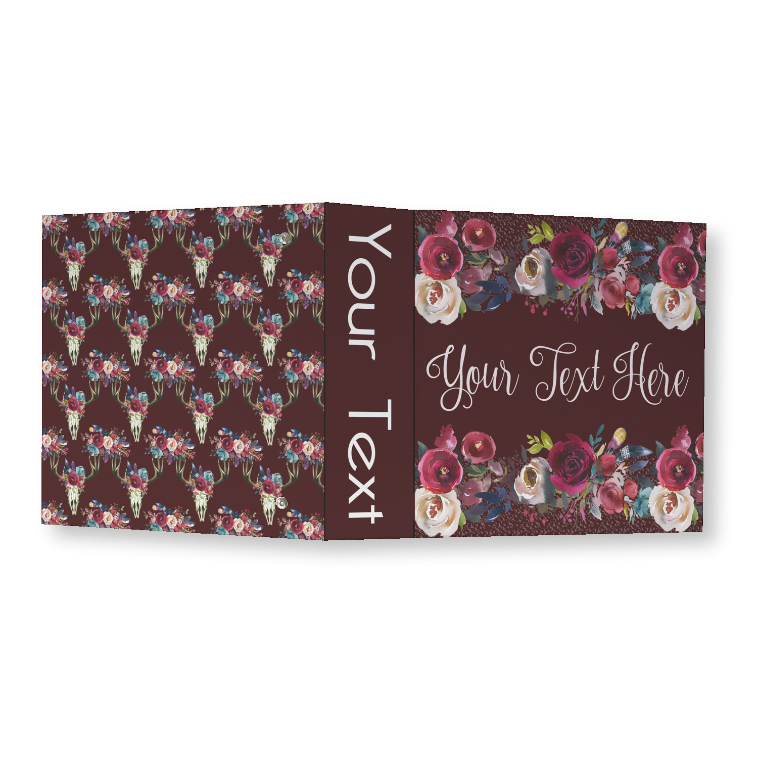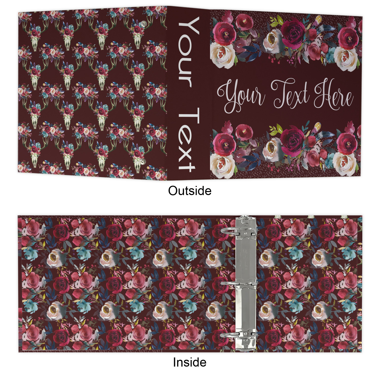 Made from a sturdy cardboard base with a full high quality canvas textured vinyl wrap with the design of your choice. Unlike our standard 3-ring binder with the full wrap design your artwork wraps from the front and back and into the inside of the binder.