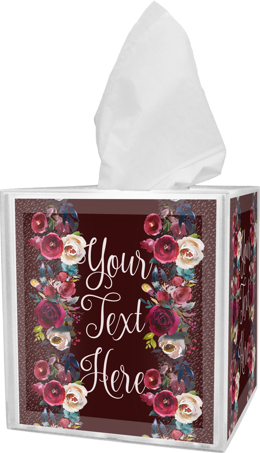 These tissue holders are built from durable acrylic and display your unique personalization on fine-quality vinyl inserts placed within the four sides and top. The box features two pieces, allowing you to easily switch out tissue boxes. On the sides, you'll find ridges that ensure the top and base fit securely in place. The bottom of these tissue box holders has four, rubber, non-slip pads to prevent the box from scuffing any surface you decide to display it on. Each box can fit a standard 5-by-5-inch box of tissues.