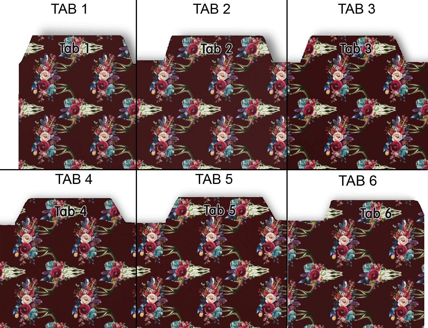 What better way to outfit your new custom personalized binder than a set of custom tab dividers? These can be made to compliment your binder design to take it to the next level!