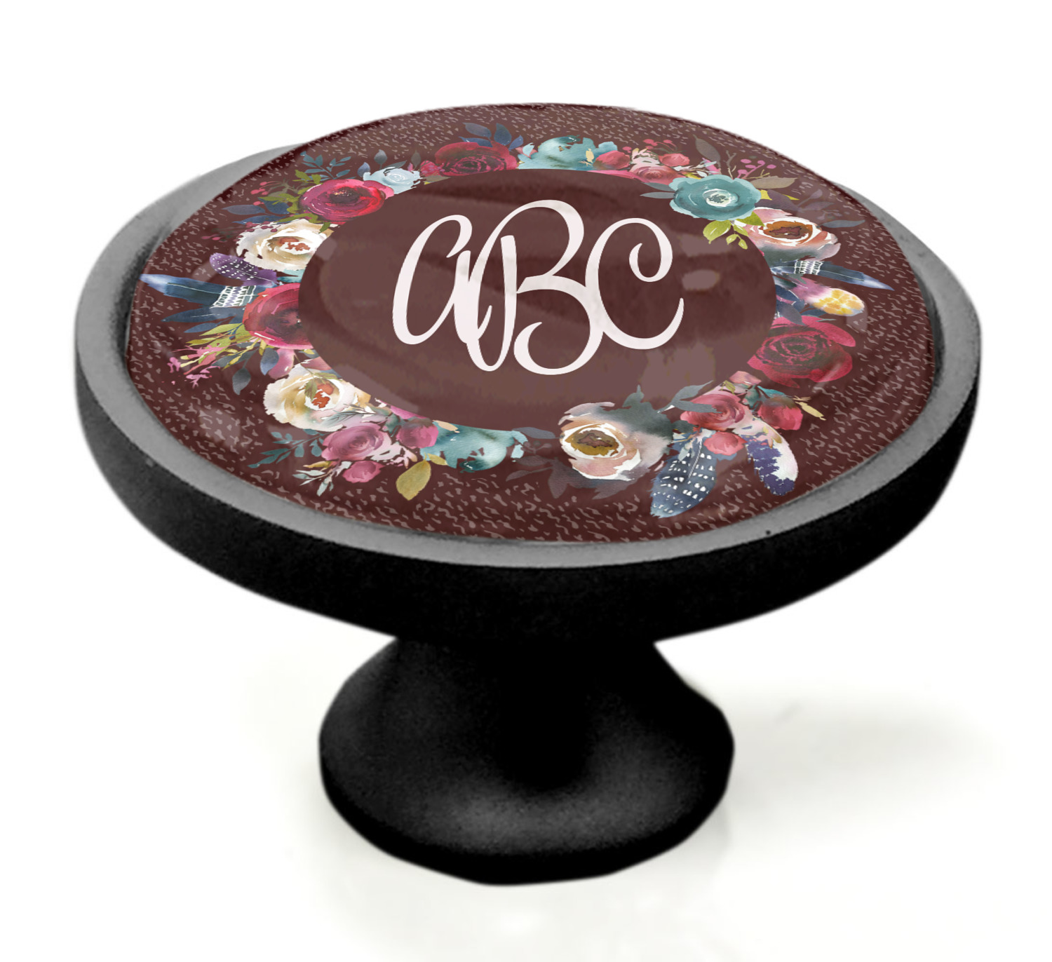 We sell these cabinet pulls in two different colors to better match your room's color scheme. We offer an oil-rubbed bronze base that is black in color, and a satin nickel option, which has a silver color. Your design is displayed across a high gloss vinyl insert that is placed on top of these cabinet handles. We then place a 1 inch thick glass cabochon atop the design, which seals the cabinet knob and makes the colors of your customization stand out. These custom cabinet knobs are approximately 1.3 inches in diameter. Your purchase includes a 1 inch screw that can be used to mount the knob to any cabinet in your home.