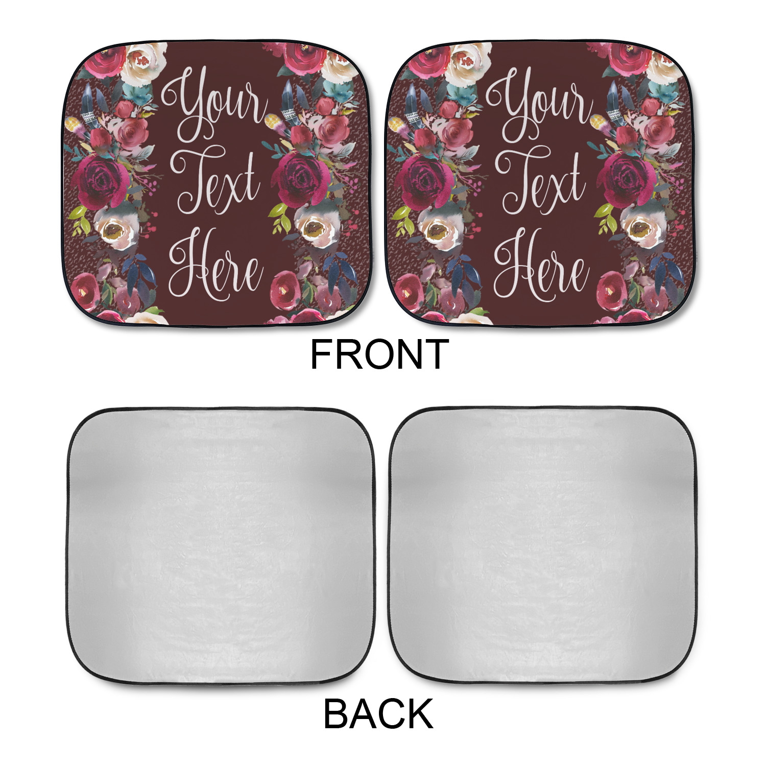 Sold as a pair and with your design printed on the front and the back having a reflective silver material these are sure to reduce the temperature of the inside of your car and keep UV rays from prematurely wearing your dash and interior panels. You have the option of both being the same design or design them separately for a unique look that will have all of your friends asking where you got your car windshield sun shades.