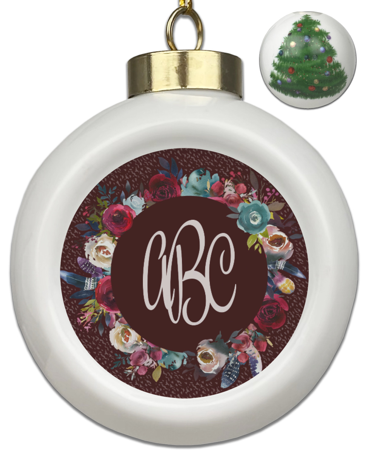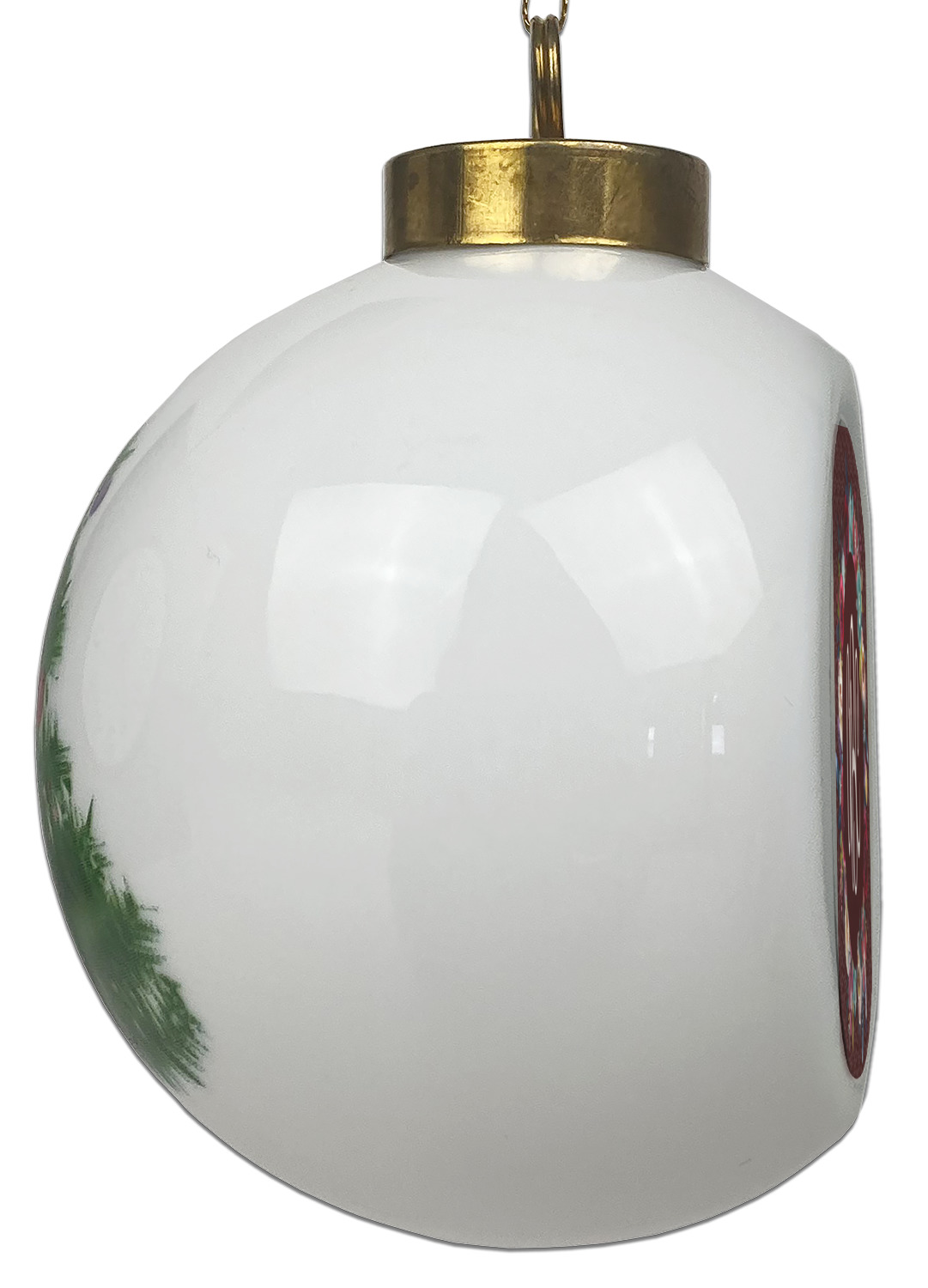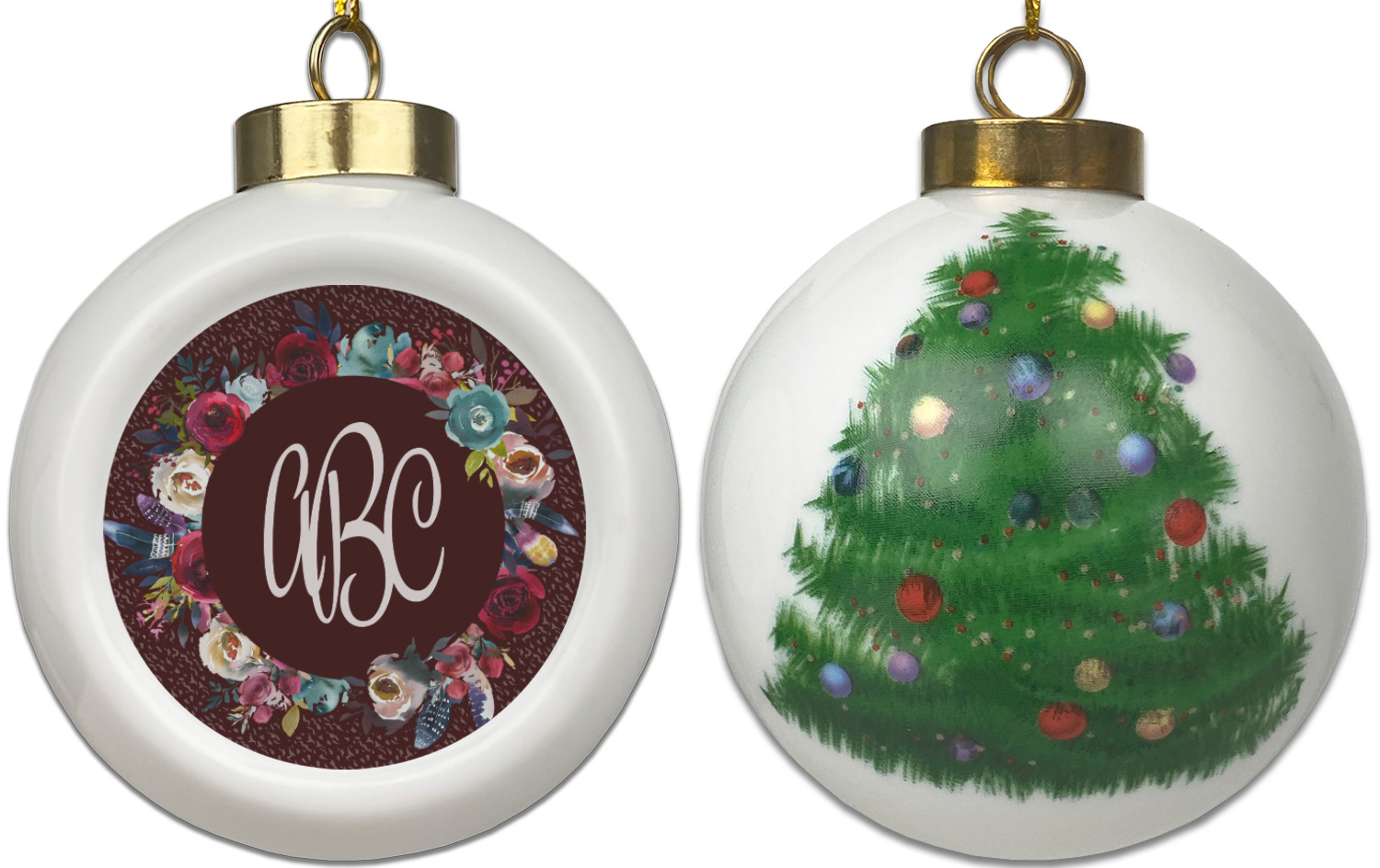 Our Christmas ornaments are a unique ceramic ball shape with a twist as it has a flat face to display your custom design! Select from one of our two design types - Christmas Tree or Poinsettia Garland - to adorn the curved back of your personal design. Each ornament measures 3H x 2.5W x 2D accompanied with a gold string accent for finishing touches to hang on your beautiful Christmas tree!