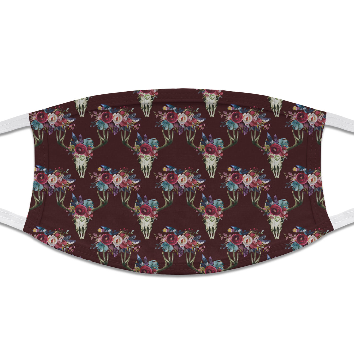 The masks are made from two layers of the soft jersey fabric. The outside layer will be printed with your design, while the inside layer is white. The body of the mask is trimmed and double stitched with the same jersey fabric. The masks are approximately 7 inches wide by 4.75 inches high