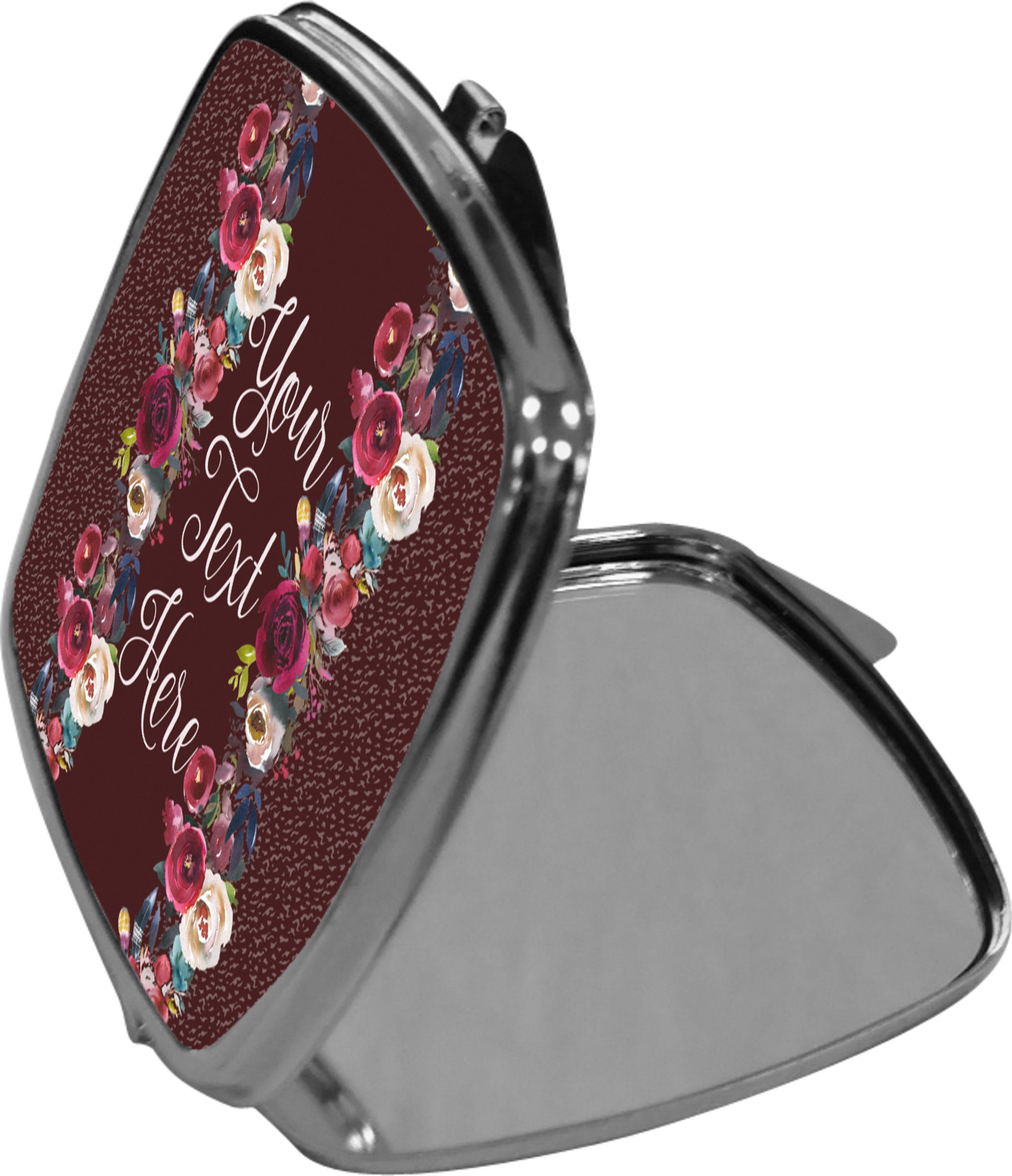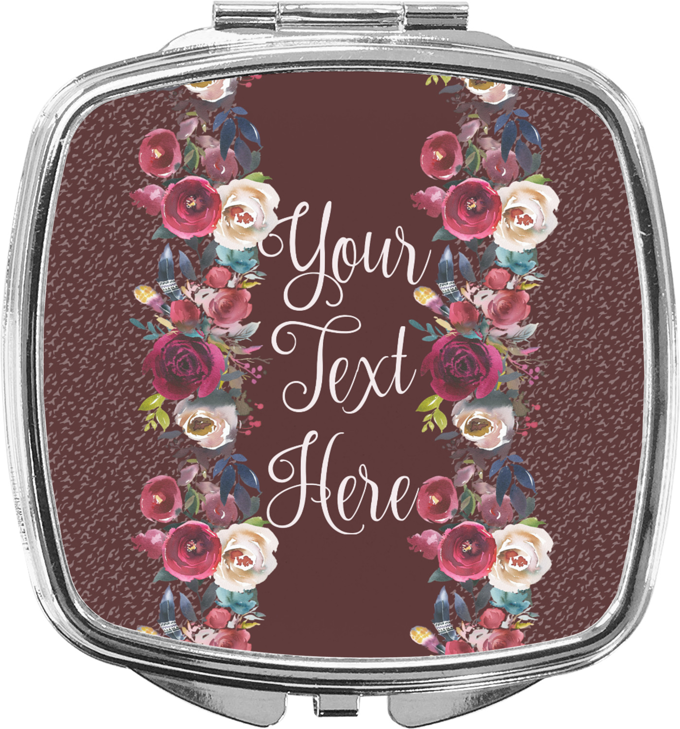 Every woman needs a compact mirror in her purse. Our personalized compact mirrors make a great bridesmaid gift or a mother's day gift, especially when you combine it with our personalized makeup bags. Get both in the same design or a coordinating design and have them both personalized.