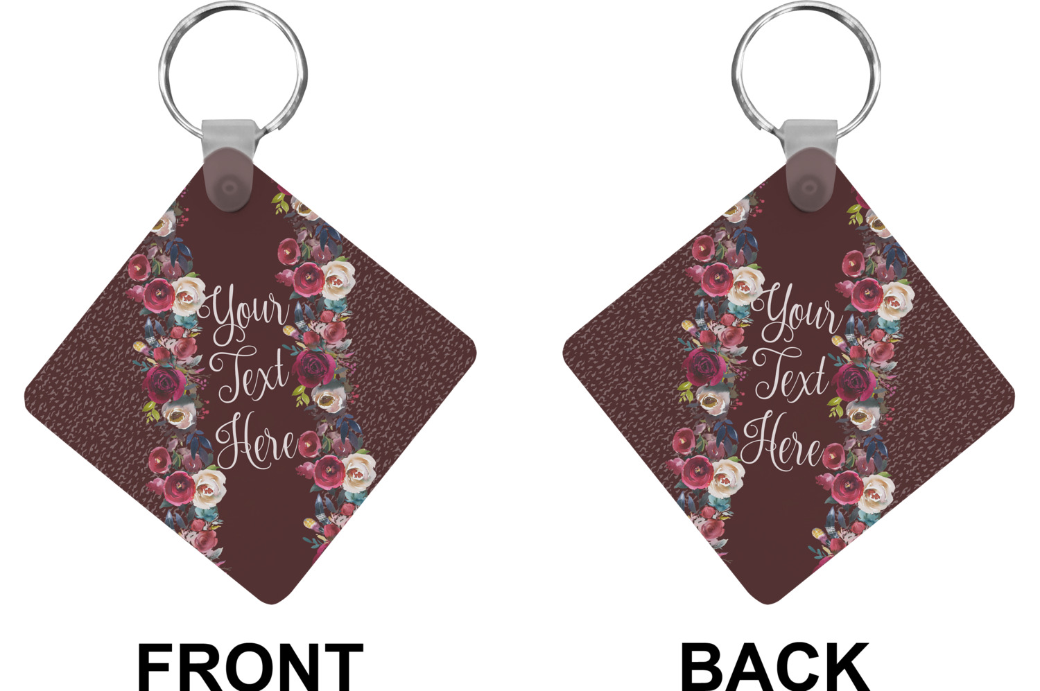 Our personalized keychains attach to the included metal, split key ring with a plastic, removable snap. Since a metal ring is included with your purchase, you have the liberty to keep your keys together on the ring, with or without your unique keychain. We offer this keychain in three different shapes: circle, heart, or diamond. We print your personalized design(s) on both sides of the key chain, and the surface has a glossy, reflective finish that only emphasizes your design. Each keychain is approximately 2.25 by 2.25 inches.