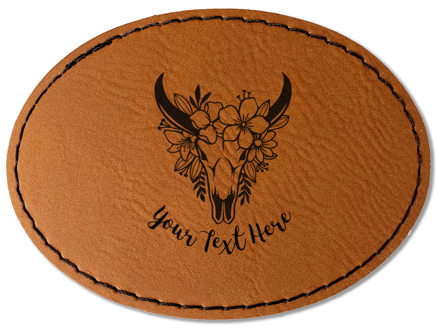 Our leather patches come in 4 different shapes - Square (3" x 3"), Round (3" x 3"), Oval (3.5" x 2.5"), Rectangle (3.5" x 2.5") and a beautiful rich brown rawhide or cognac color.