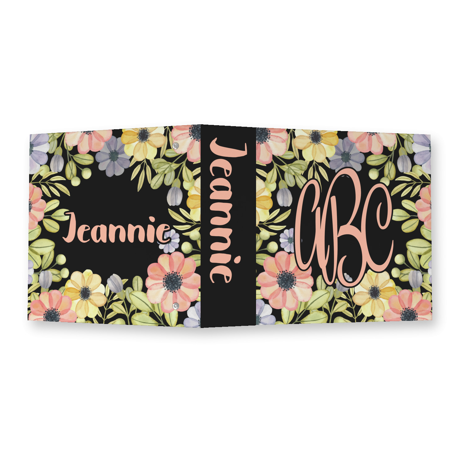 Made from a sturdy cardboard base with a full high quality canvas textured vinyl wrap with the design of your choice. Unlike our standard 3-ring binder with the full wrap design your artwork wraps from the front and back and into the inside of the binder.