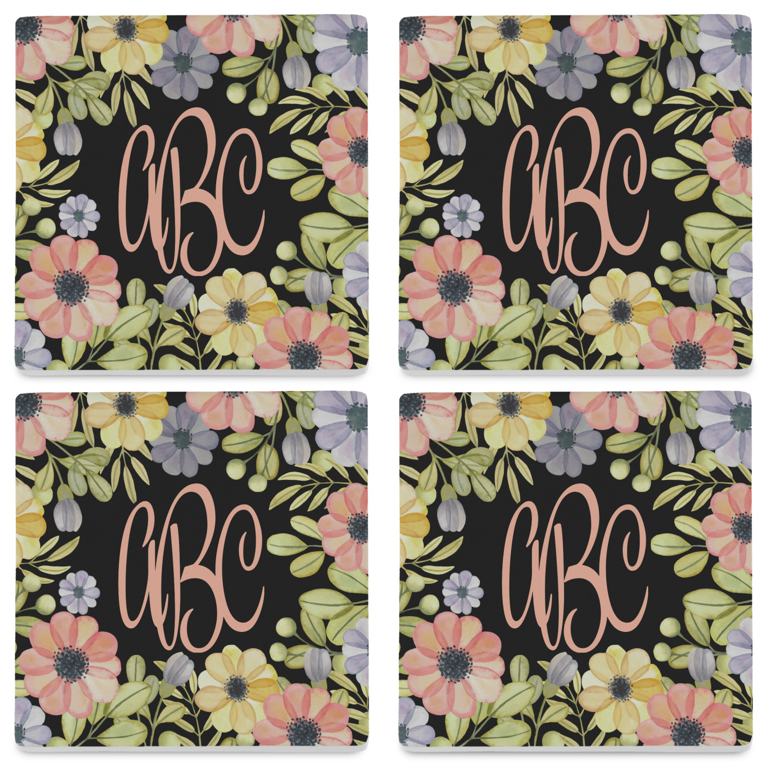 By default, the 4 coasters all have the same design on them, however, you can change that and have a different design on each one of the 4 coasters. The choice is yours.