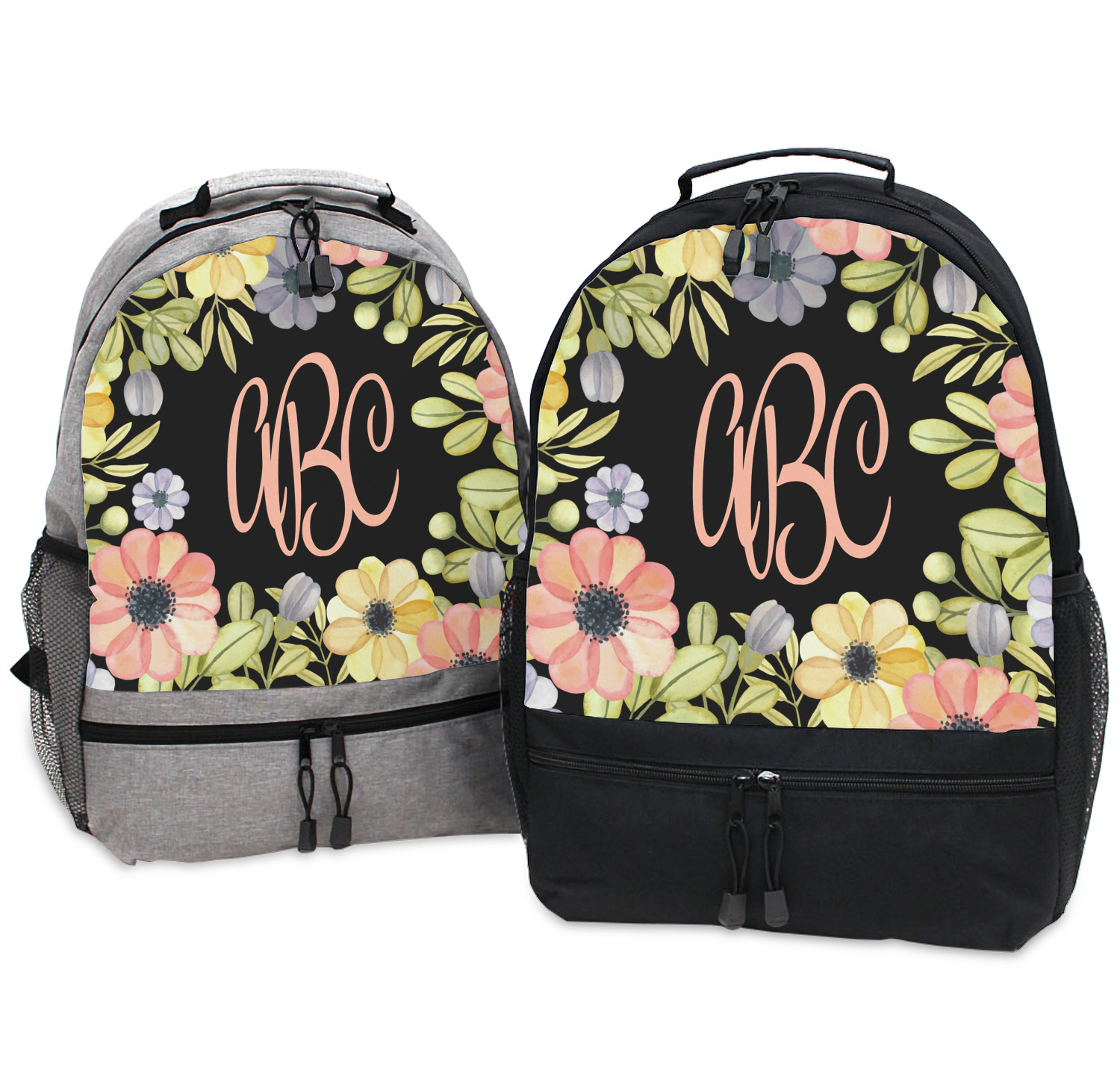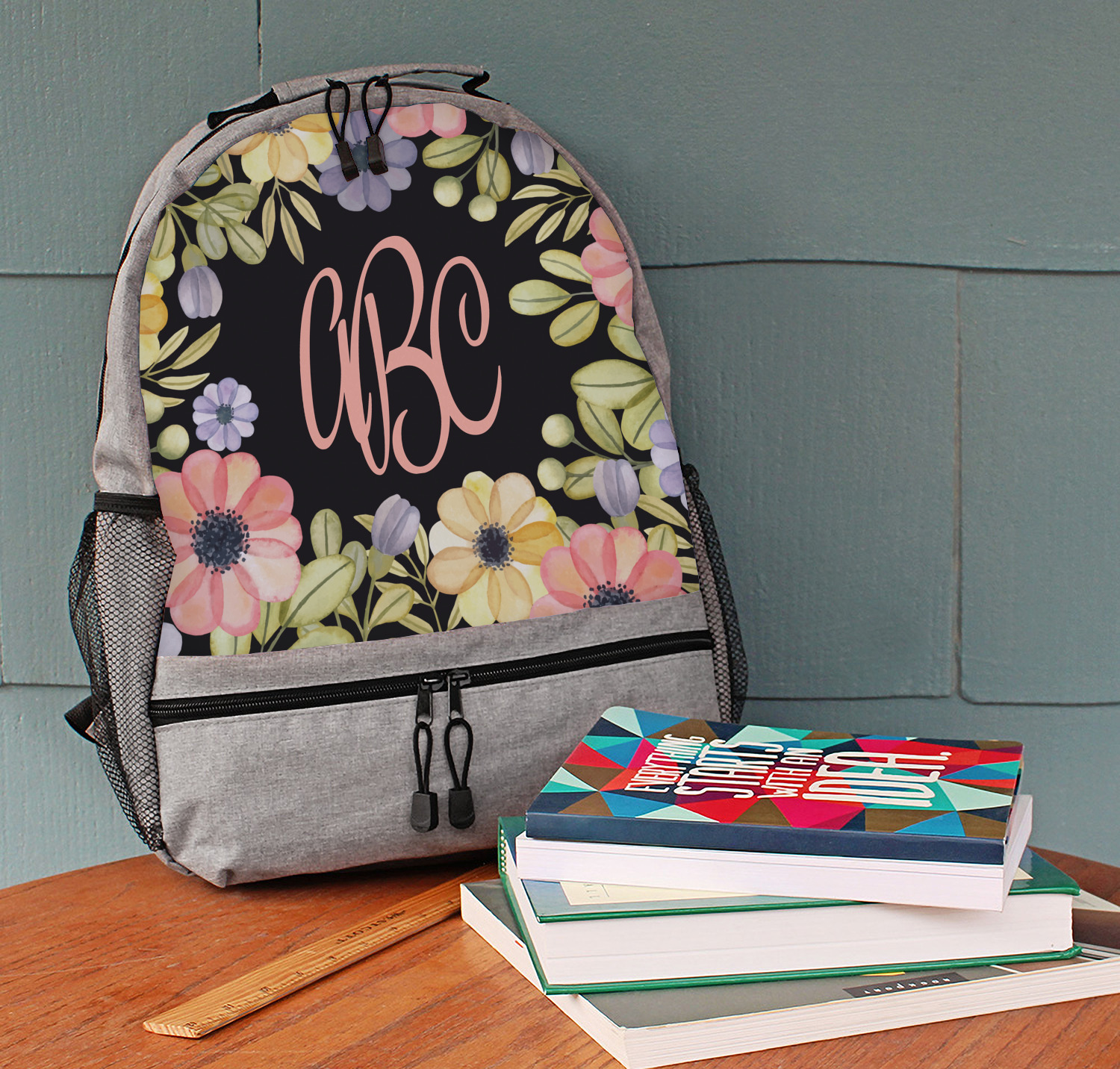 This design features a gorgeous black background with a frame of colorful wild flowers and greenery. You will find pinks, purples, and greens. But, if you were looking for other colors or types of flowers, be sure to take a peek in our design center at the other fun floral frame backgrounds we have. In the middle of this floral design you will find a three letter monogram to give an opportunity for our favorite thing: personalizing!