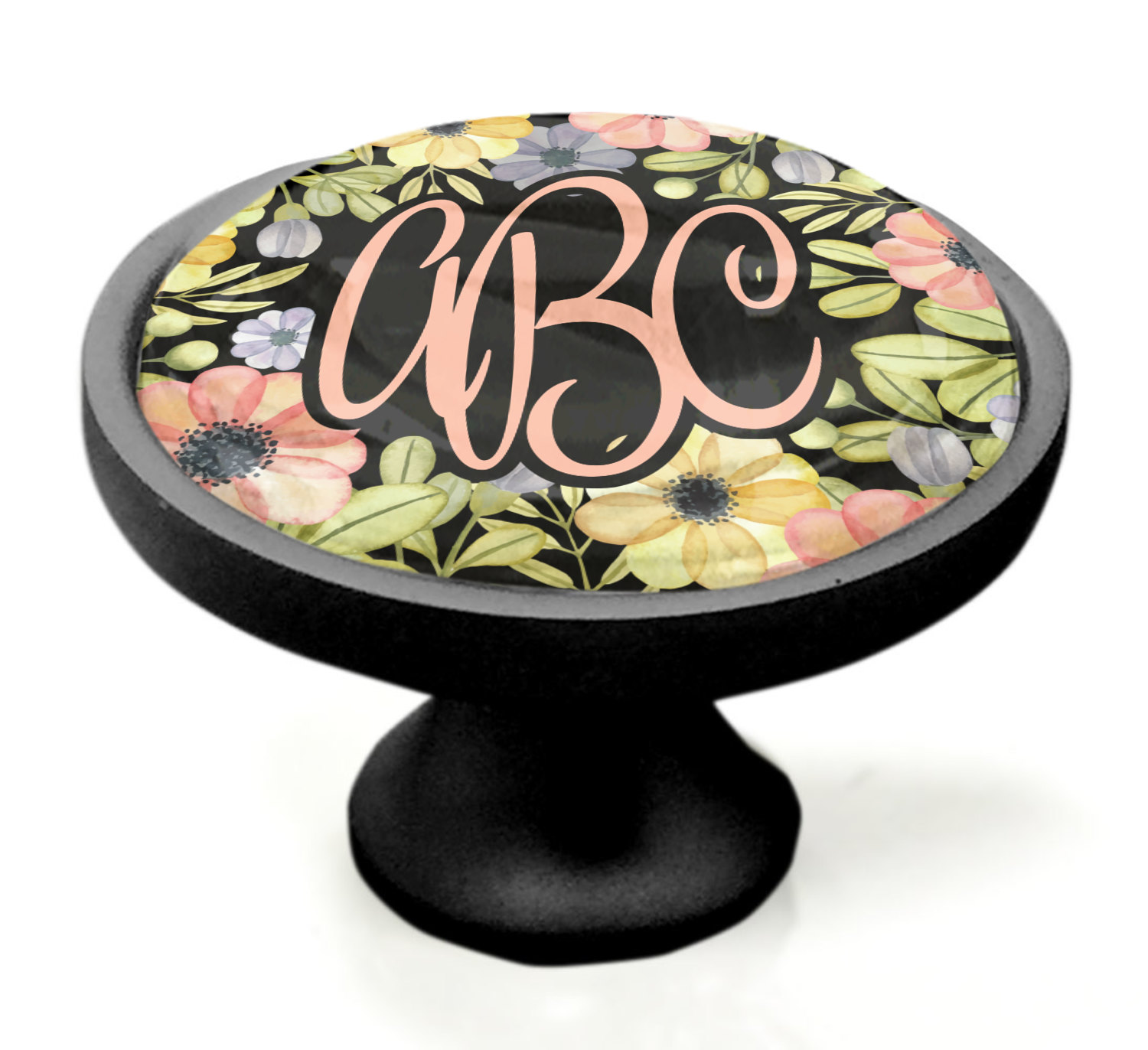 We sell these cabinet pulls in two different colors to better match your room's color scheme. We offer an oil-rubbed bronze base that is black in color, and a satin nickel option, which has a silver color. Your design is displayed across a high gloss vinyl insert that is placed on top of these cabinet handles. We then place a 1 inch thick glass cabochon atop the design, which seals the cabinet knob and makes the colors of your customization stand out. These custom cabinet knobs are approximately 1.3 inches in diameter. Your purchase includes a 1 inch screw that can be used to mount the knob to any cabinet in your home.