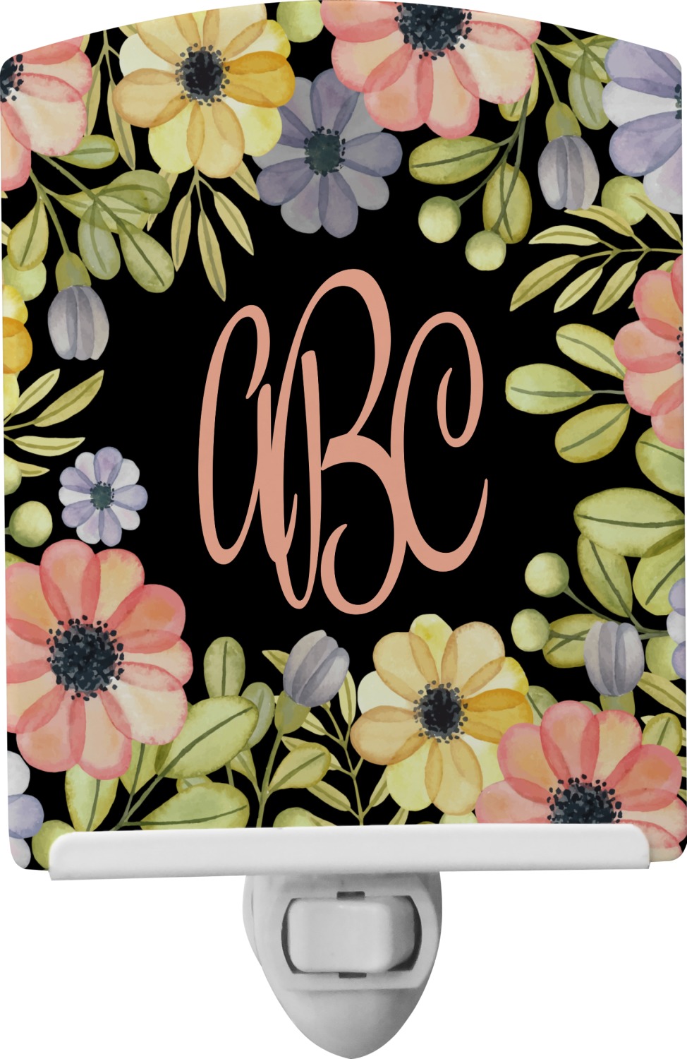 This design features a gorgeous black background with a frame of colorful wild flowers and greenery. You will find pinks, purples, and greens. But, if you were looking for other colors or types of flowers, be sure to take a peek in our design center at the other fun floral frame backgrounds we have. In the middle of this floral design you will find a three letter monogram to give an opportunity for our favorite thing: personalizing!