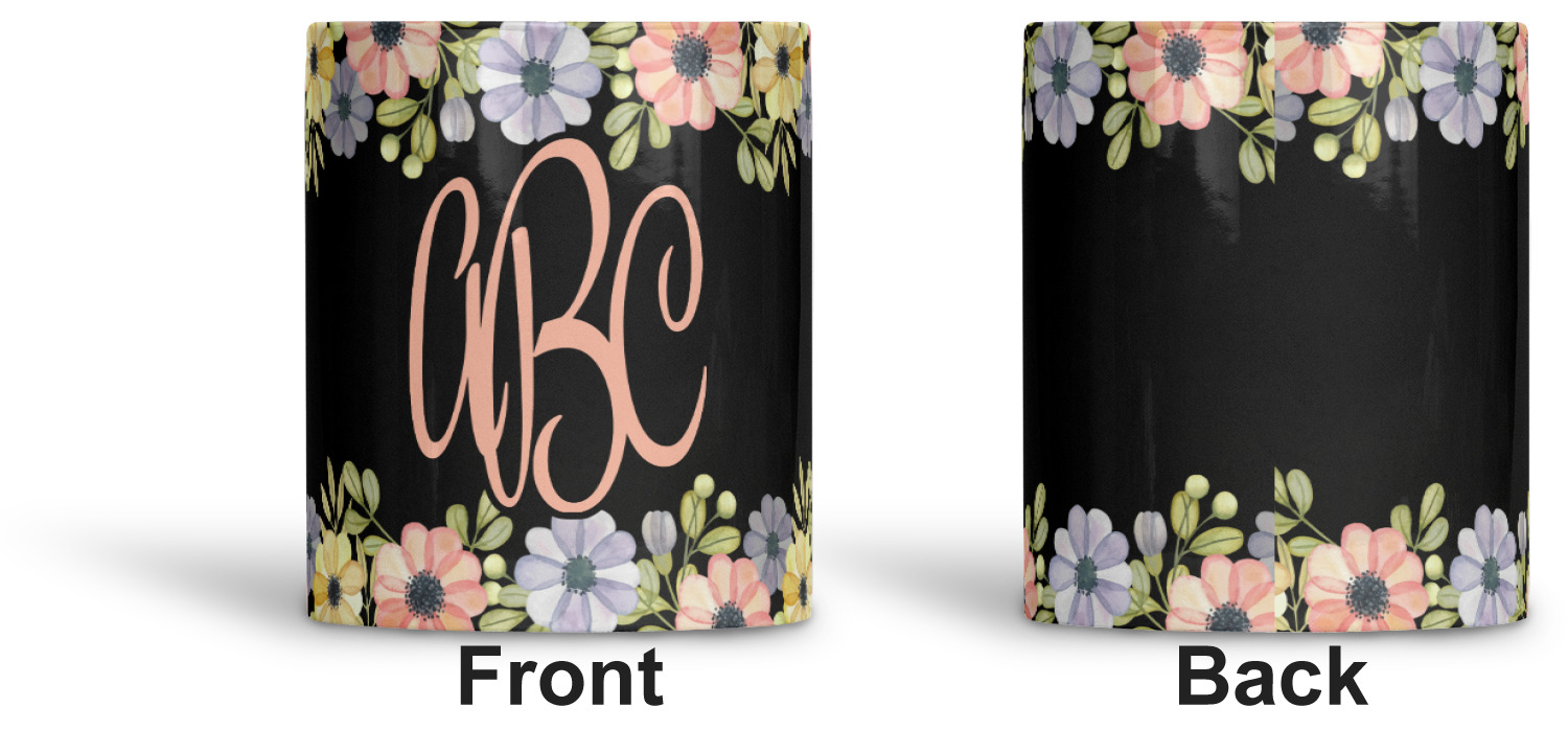 This design features a gorgeous black background with a frame of colorful wild flowers and greenery. You will find pinks, purples, and greens. But, if you were looking for other colors or types of flowers, be sure to take a peek in our design center at the other fun floral frame backgrounds we have. In the middle of this floral design you will find a three letter monogram to give an opportunity for our favorite thing: personalizing!