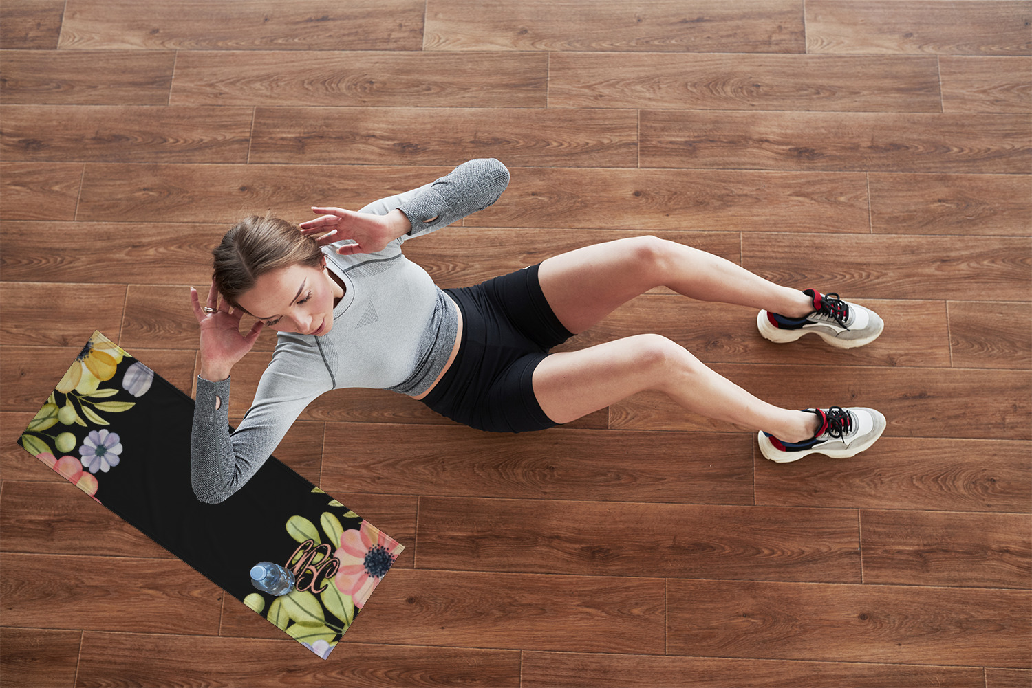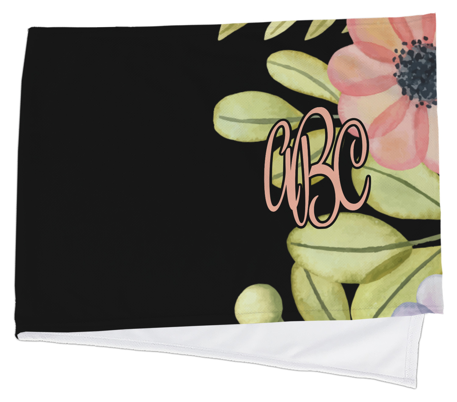This design features a gorgeous black background with a frame of colorful wild flowers and greenery. You will find pinks, purples, and greens. But, if you were looking for other colors or types of flowers, be sure to take a peek in our design center at the other fun floral frame backgrounds we have. In the middle of this floral design you will find a three letter monogram to give an opportunity for our favorite thing: personalizing!