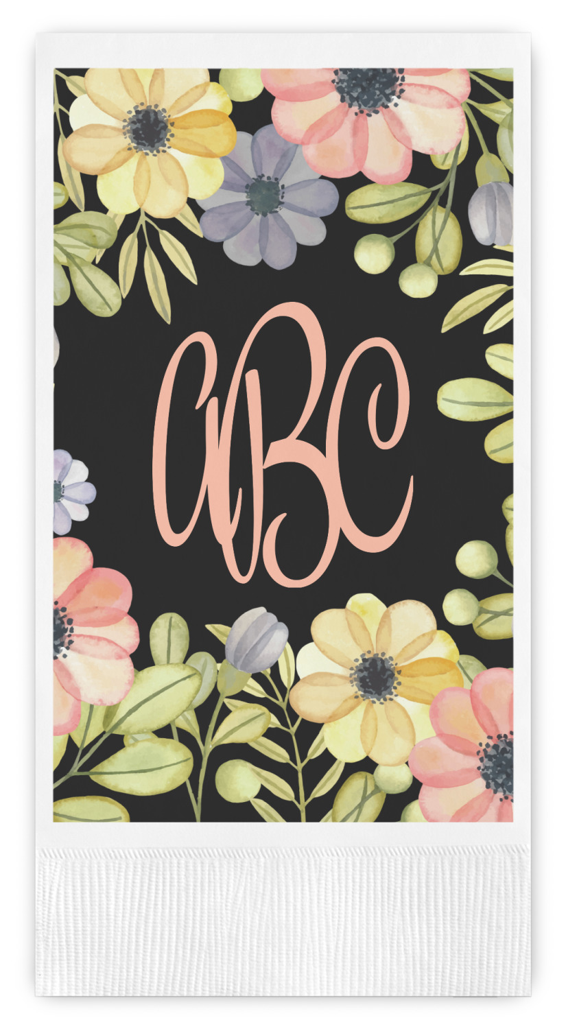 This design features a gorgeous black background with a frame of colorful wild flowers and greenery. You will find pinks, purples, and greens. But, if you were looking for other colors or types of flowers, be sure to take a peek in our design center at the other fun floral frame backgrounds we have. In the middle of this floral design you will find a three letter monogram to give an opportunity for our favorite thing: personalizing!