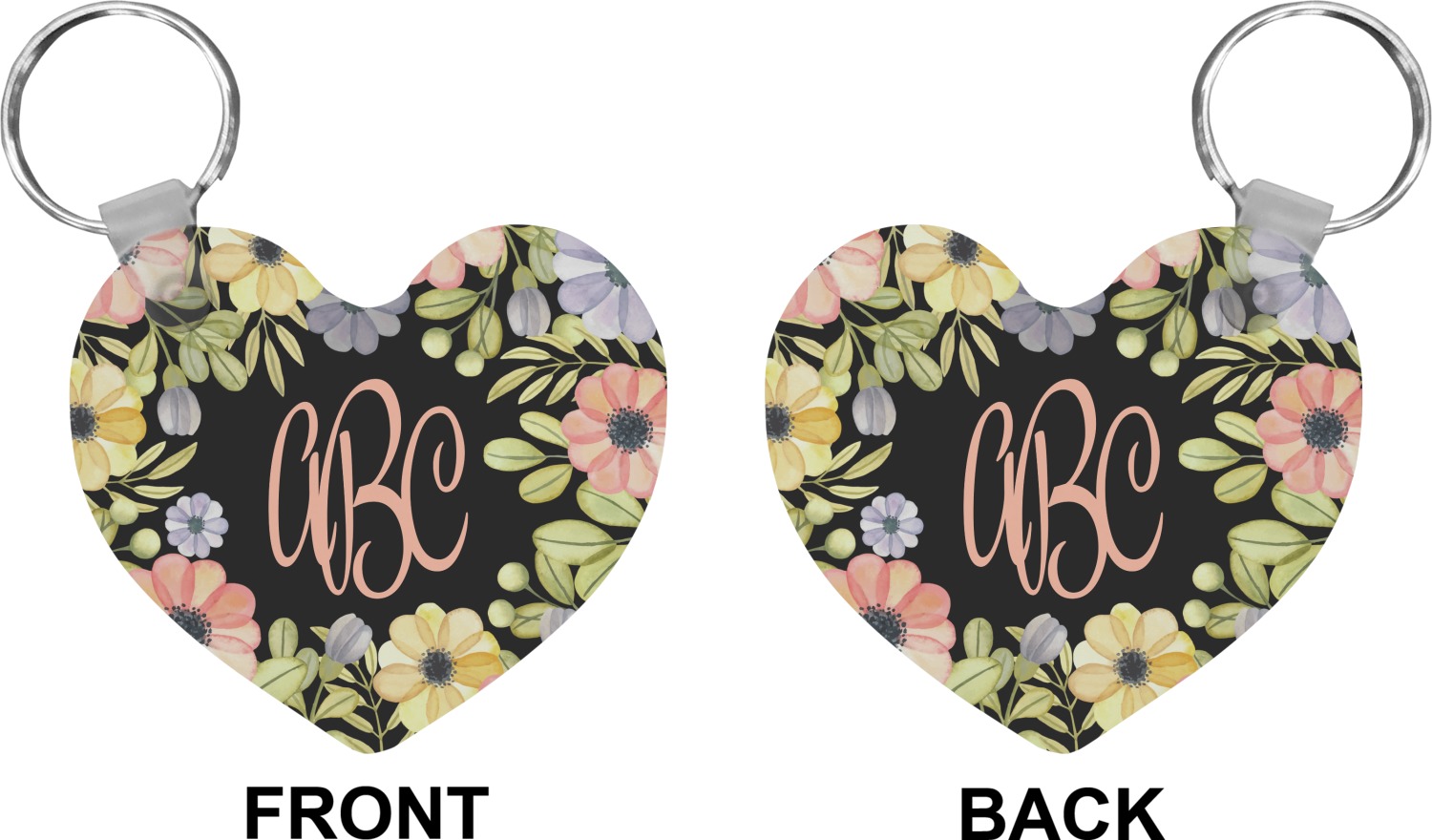 Our personalized keychains attach to the included metal, split key ring with a plastic, removable snap. Since a metal ring is included with your purchase, you have the liberty to keep your keys together on the ring, with or without your unique keychain. We offer this keychain in three different shapes: circle, heart, or diamond. We print your personalized design(s) on both sides of the key chain, and the surface has a glossy, reflective finish that only emphasizes your design. Each keychain is approximately 2.25 by 2.25 inches.