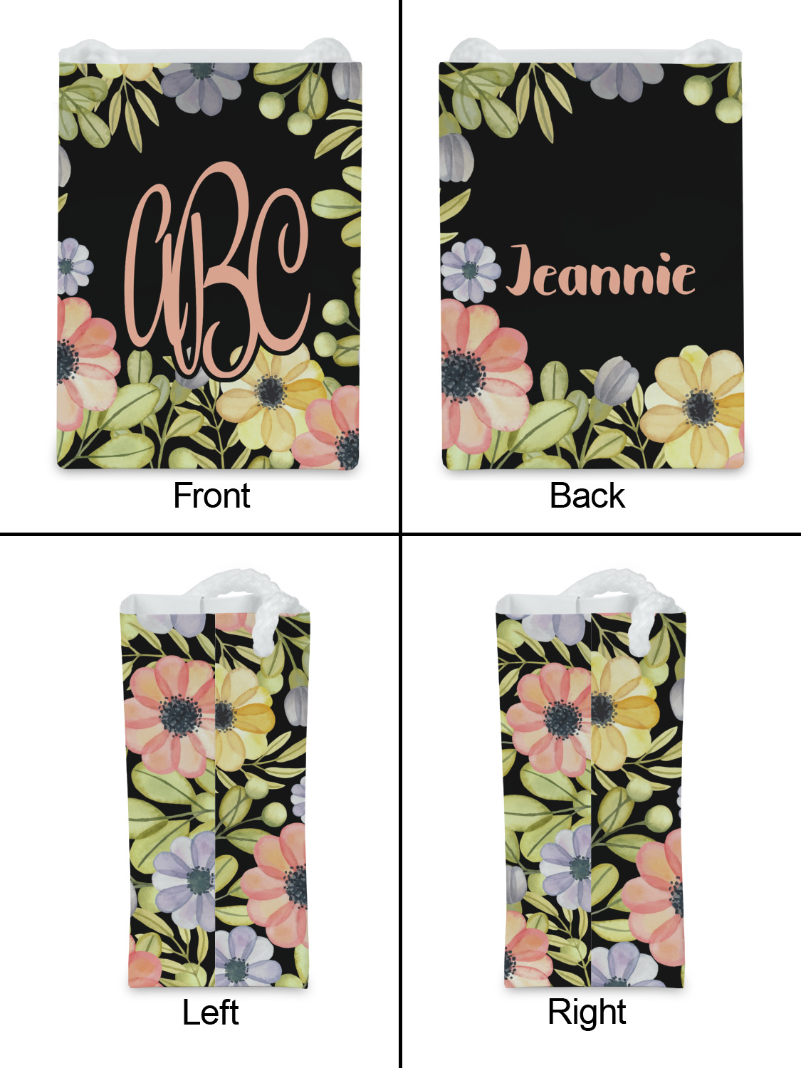 This design features a gorgeous black background with a frame of colorful wild flowers and greenery. You will find pinks, purples, and greens. But, if you were looking for other colors or types of flowers, be sure to take a peek in our design center at the other fun floral frame backgrounds we have. In the middle of this floral design you will find a three letter monogram to give an opportunity for our favorite thing: personalizing!