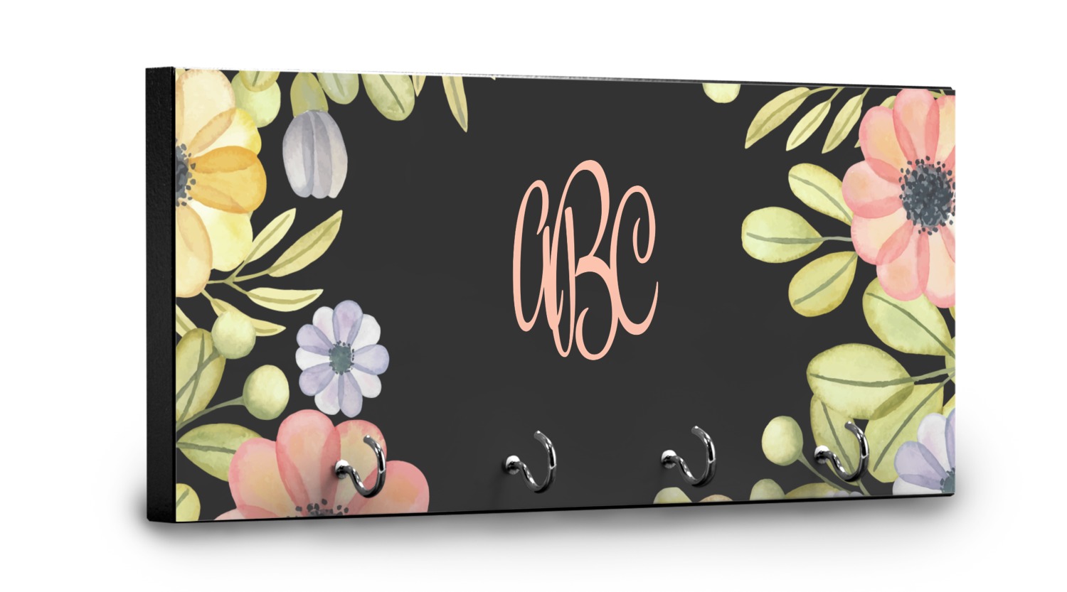 This 11" x 5" key hanger is made of sturdy wood and has four metal hooks lining the bottom. This is the perfect size for a family with several drivers. Not only can you hang keys on it though, but pet leashes and other small items. The board is black on the sides and back and is printed with the design of your choice on the front.