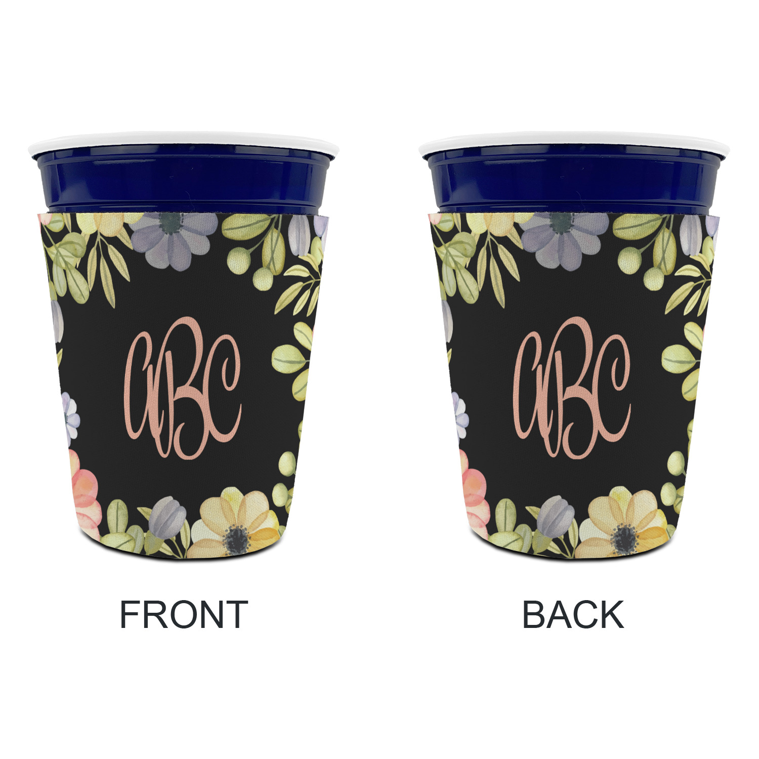 Made from neoprene with a polyester outer fabric and sewn seams, these premium quality party cup sleeves are very durable and will hold up to heavy use. They are available in 2 styles - with a bottom or just a sleeve to go around the outside of the tapered cup. The sleeve covers are about 4" tall and cover about 90% of the classic 16 oz. Solo cup.