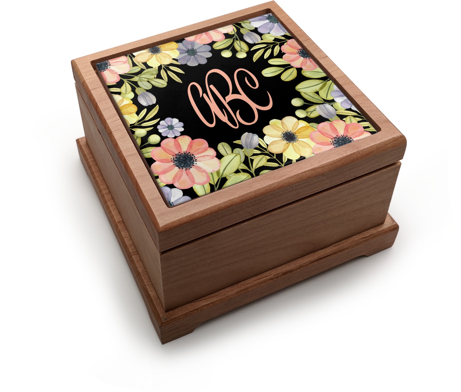 This design features a gorgeous black background with a frame of colorful wild flowers and greenery. You will find pinks, purples, and greens. But, if you were looking for other colors or types of flowers, be sure to take a peek in our design center at the other fun floral frame backgrounds we have. In the middle of this floral design you will find a three letter monogram to give an opportunity for our favorite thing: personalizing!
