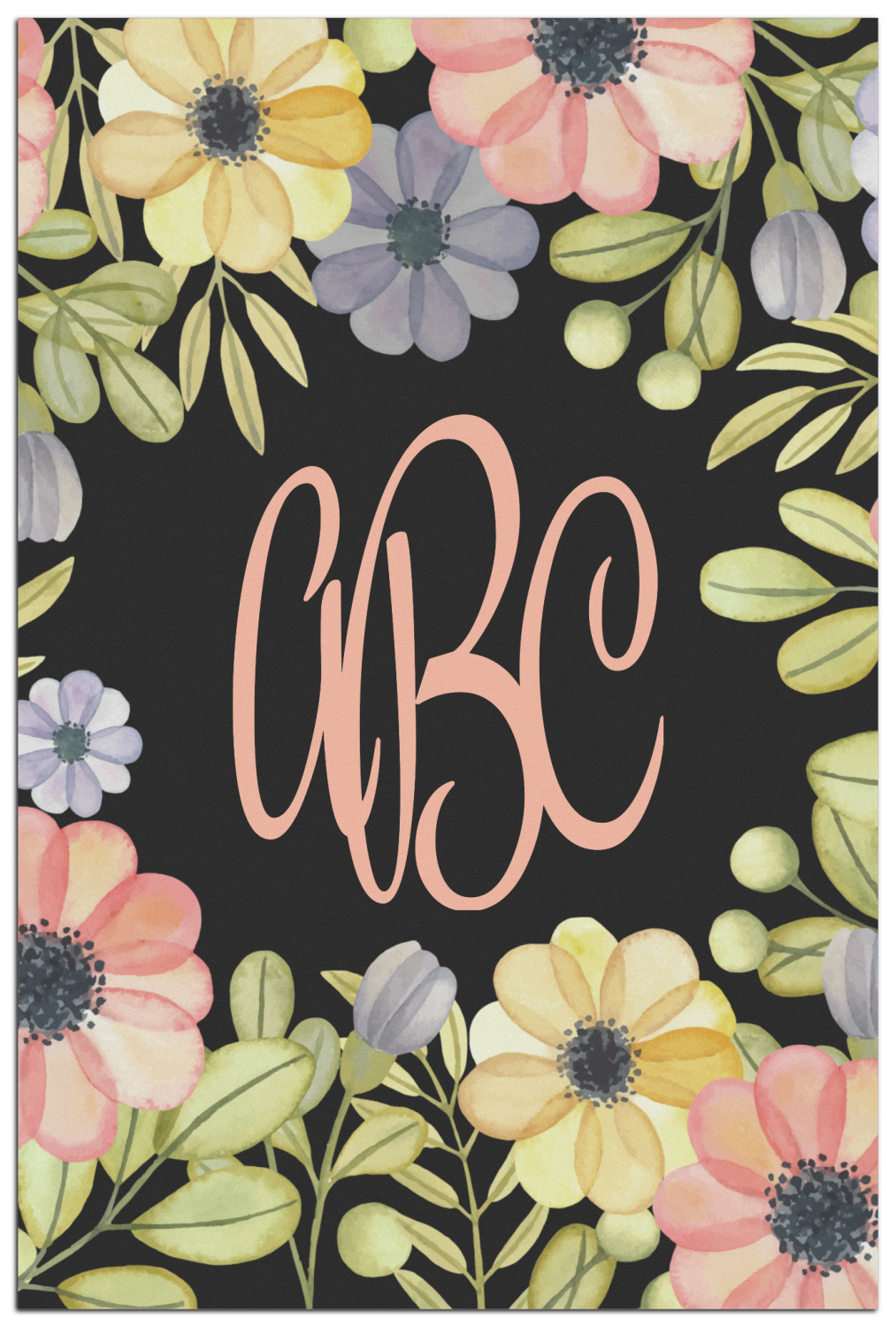 This design features a gorgeous black background with a frame of colorful wild flowers and greenery. You will find pinks, purples, and greens. But, if you were looking for other colors or types of flowers, be sure to take a peek in our design center at the other fun floral frame backgrounds we have. In the middle of this floral design you will find a three letter monogram to give an opportunity for our favorite thing: personalizing!
