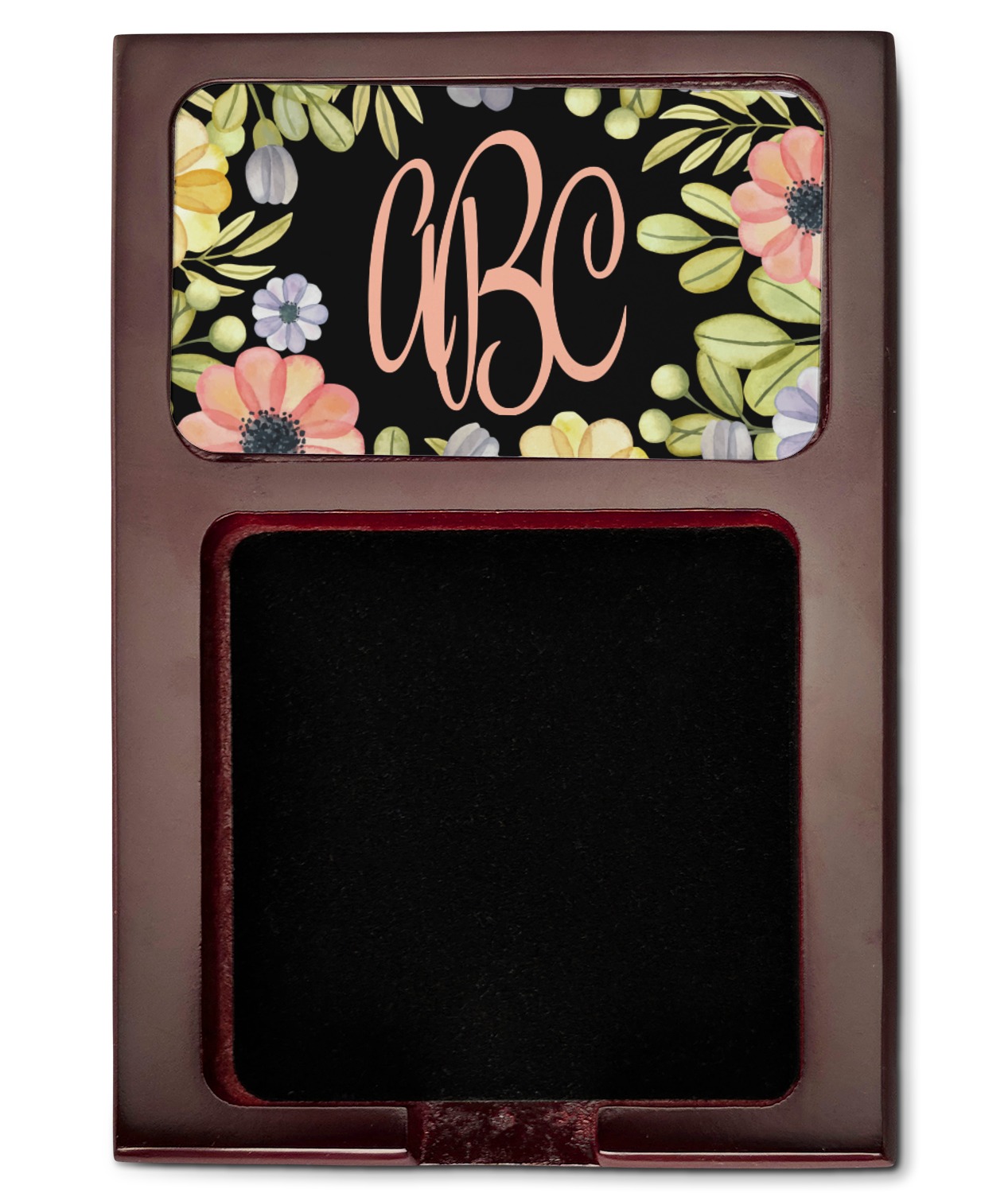 Crafted from a fine mahogany, this post it note holder is in the shade of a dark, cherry color. The dispenser itself is about 4.25 by 6.25 by 0.75 inches. You can place your 3 by 3 inch sticky notes in the indentation below the nameplate. We print your customization onto the nameplate that rests above the velvety indentation.